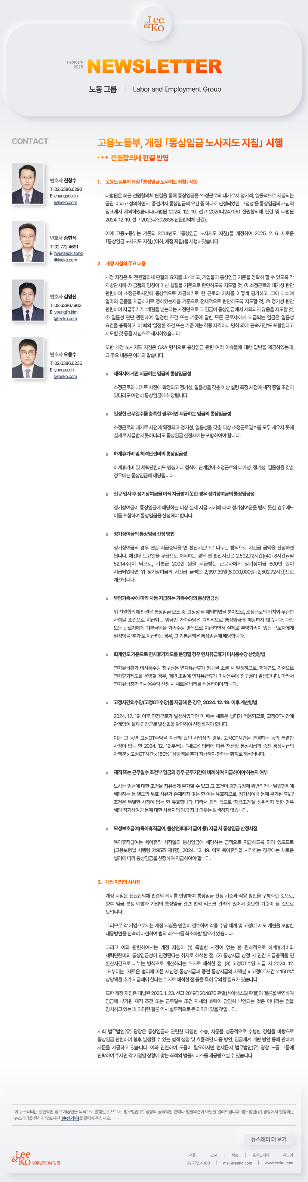 LK News_Feb 2025_고용노동부_개정_통상임금 노사지도 지침_시행_Labor and Employment Group.pdf