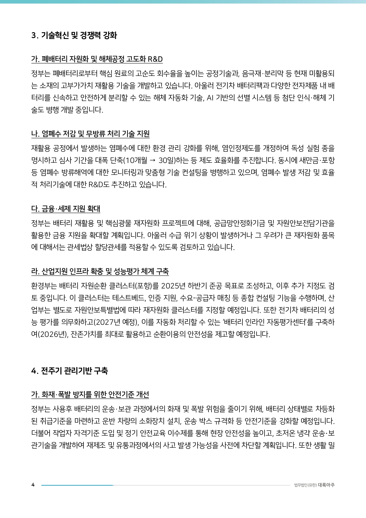 [법무법인(유한) 대륙아주] 에너지인프라 분야 이슈리포트 - 환경부 배터리 순환이용 활성화 방안