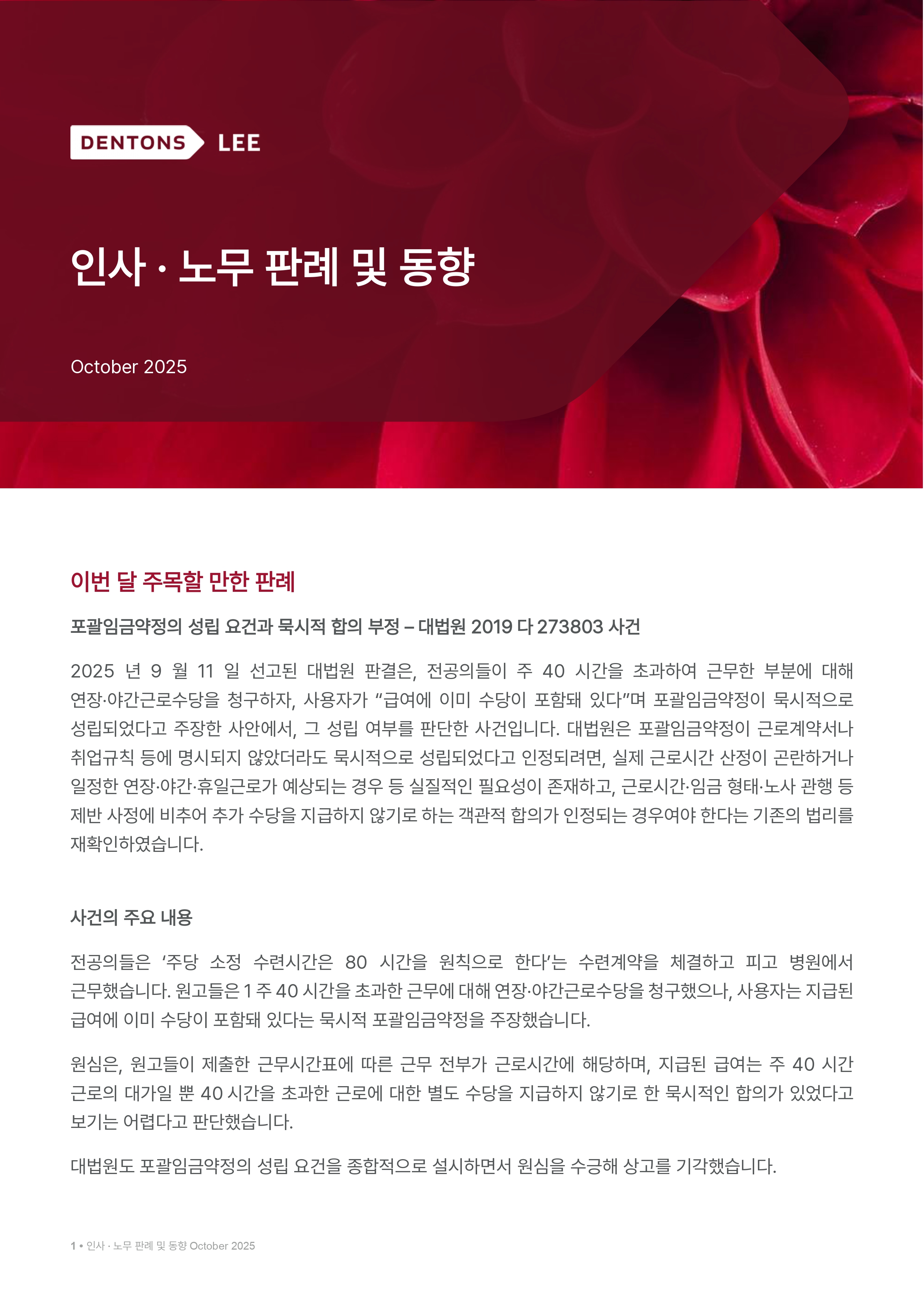 [덴톤스 리 법률사무소] 인사노무 판례 및 동향_10월호