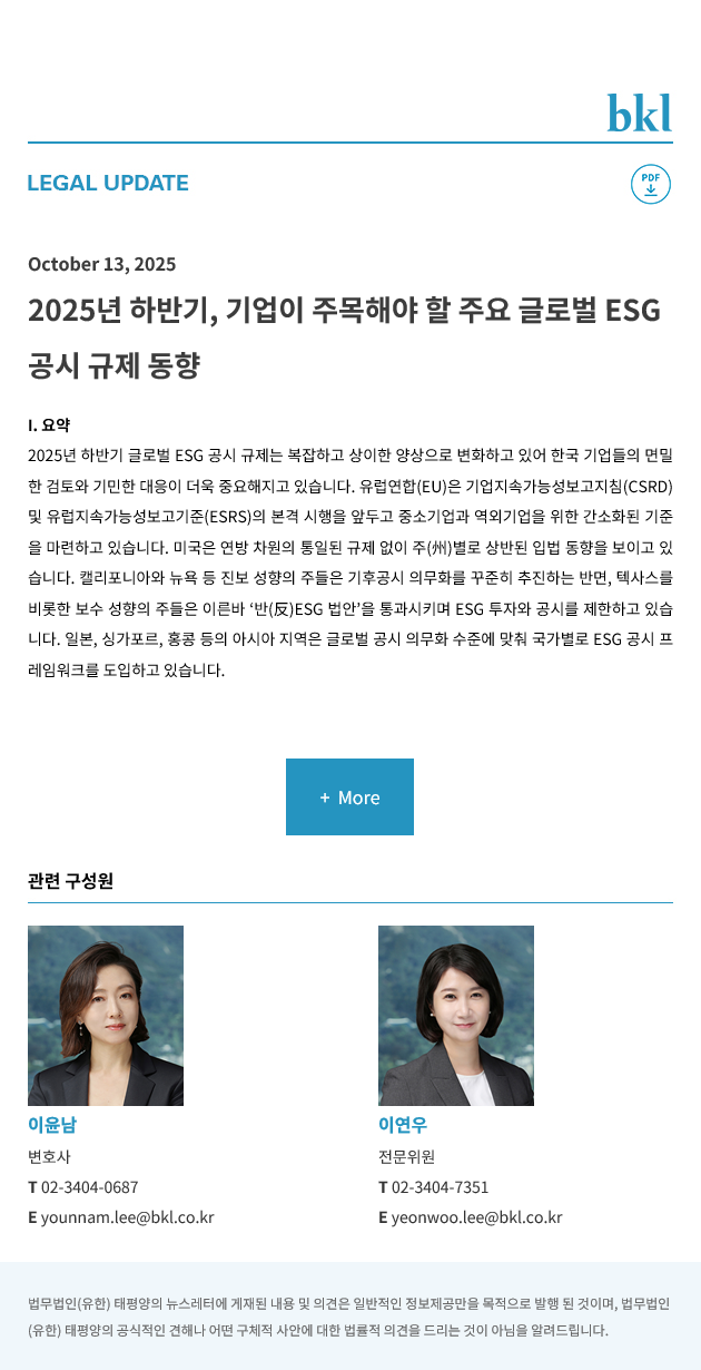 [법무법인(유한) 태평양] 2025년 하반기, 기업이 주목해야 할 주요 글로벌 ESG 공시 규제 동향