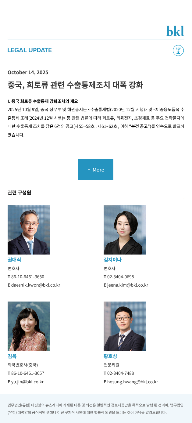[법무법인(유한) 태평양] 중국, 희토류 관련 수출통제조치 대폭 강화