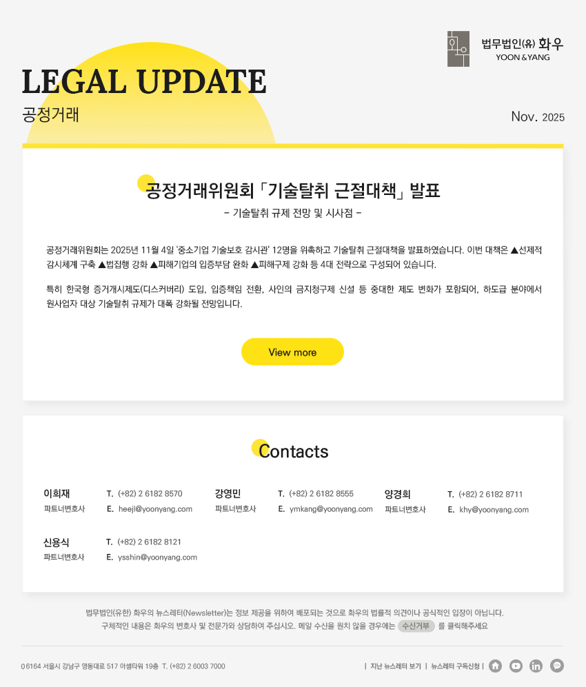 [법무법인(유한) 화우] 공정거래위원회 「기술탈취 근절대책」 발표