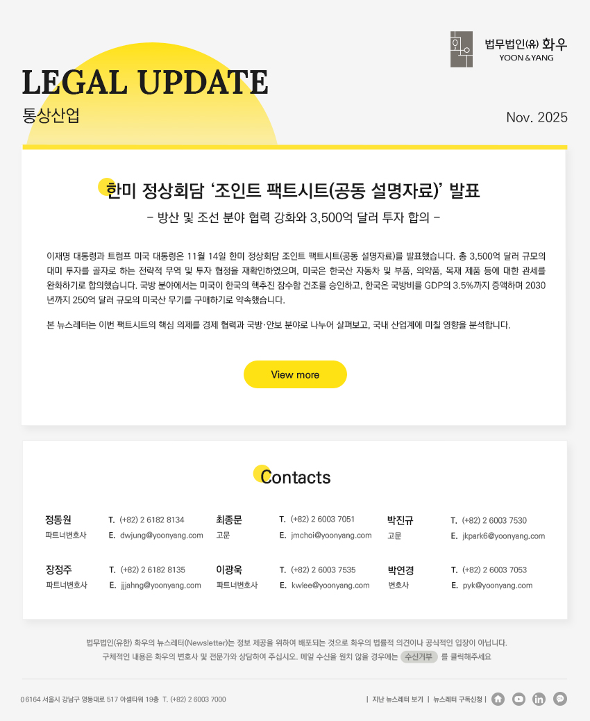 [법무법인(유한) 화우] 한미 정상회담 ‘조인트 팩트시트(공동 설명자료)’ 발표