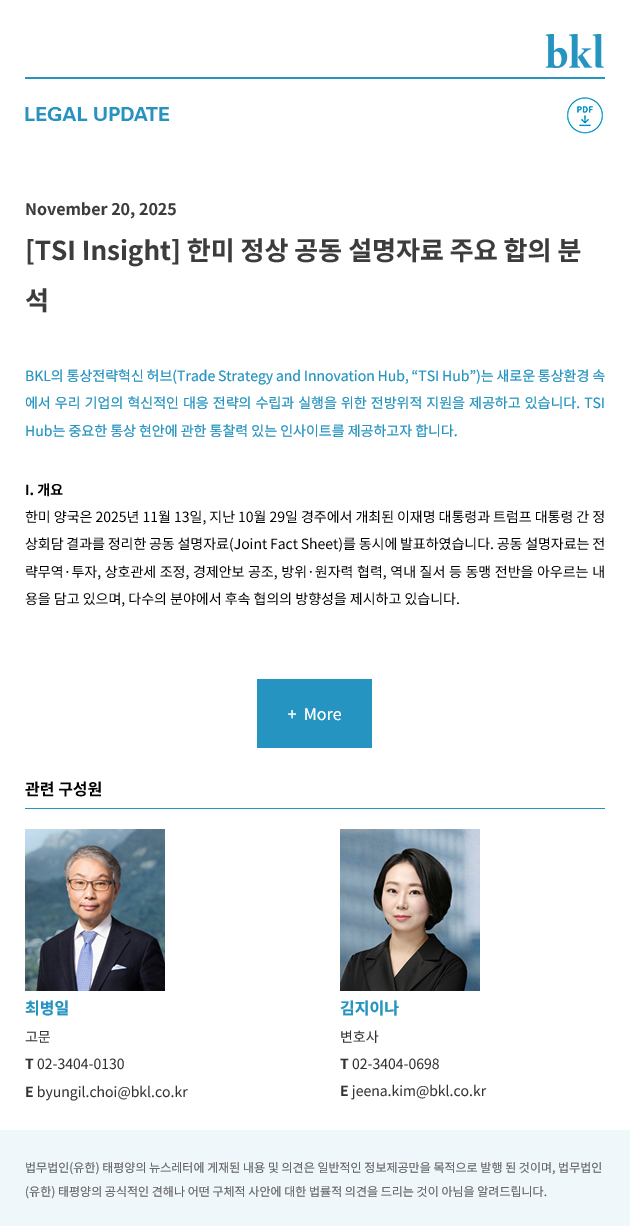 [법무법인(유한) 태평양] [TSI Insight] 한미 정상 공동 설명자료 주요 합의 분석