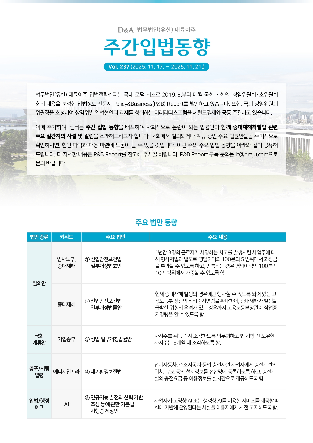 [법무법인(유한) 대륙아주] 주간입법동향_vol237