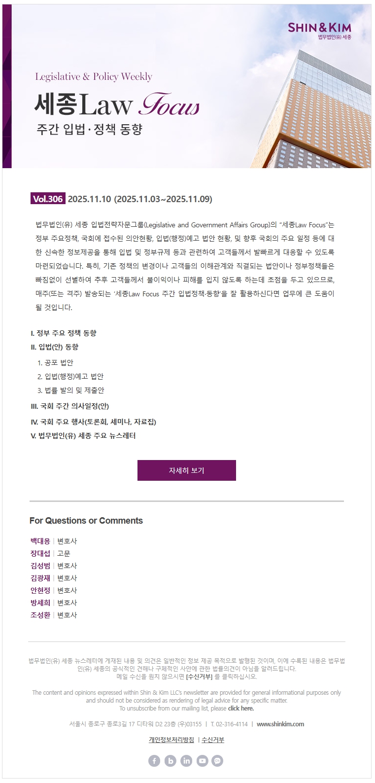 [법무법인(유) 세종] 세종Law Focus - Vol.306 (2025.11.03~2025.11.09)