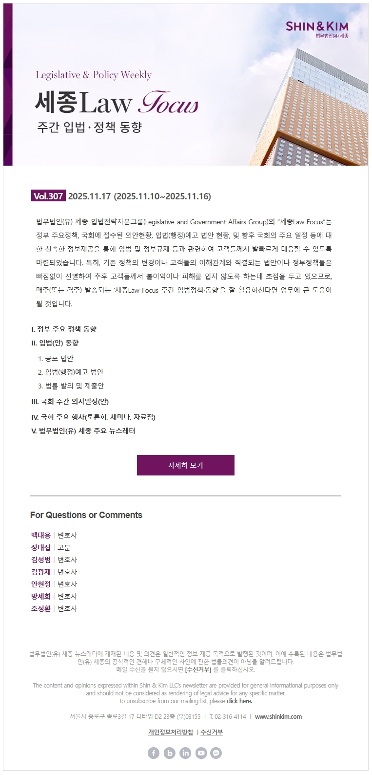[법무법인(유) 세종] 세종Law Focus - Vol.307 (2025.11.10~2025.11.16)