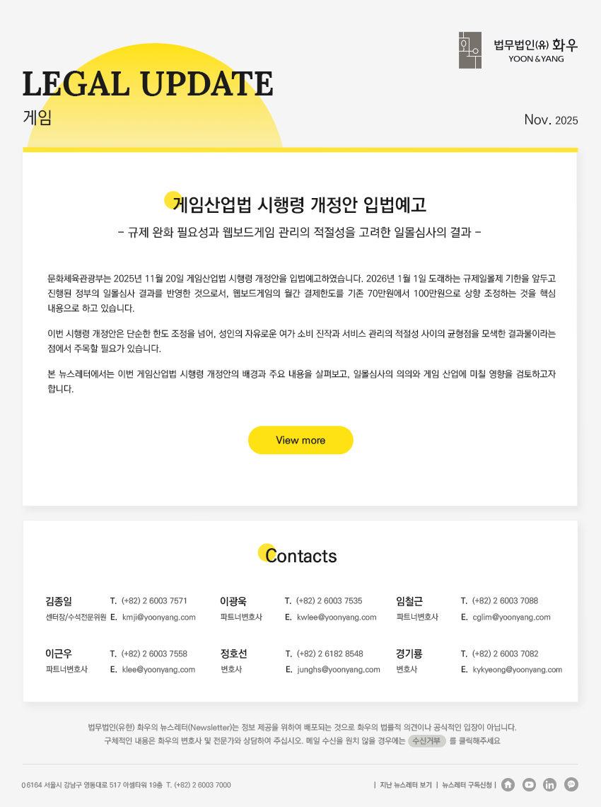 [법무법인(유한) 화우] 게임산업법 시행령 개정안 입법예고
