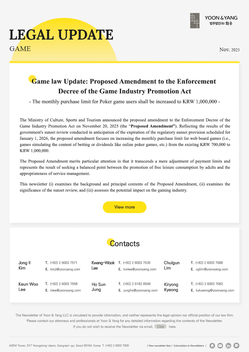 [법무법인(유한) 화우] Game law Update Proposed Amendment to the Enforcement Decree of the Game Industry Prom