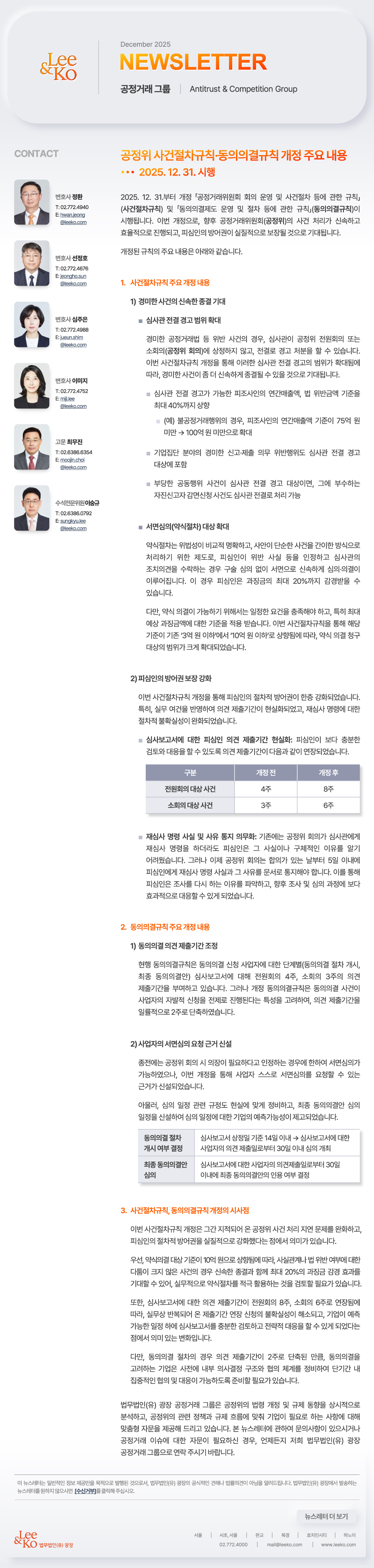 [법무법인(유) 광장] 공정위 사건절차규칙·동의의결규칙 개정 (음성지원)