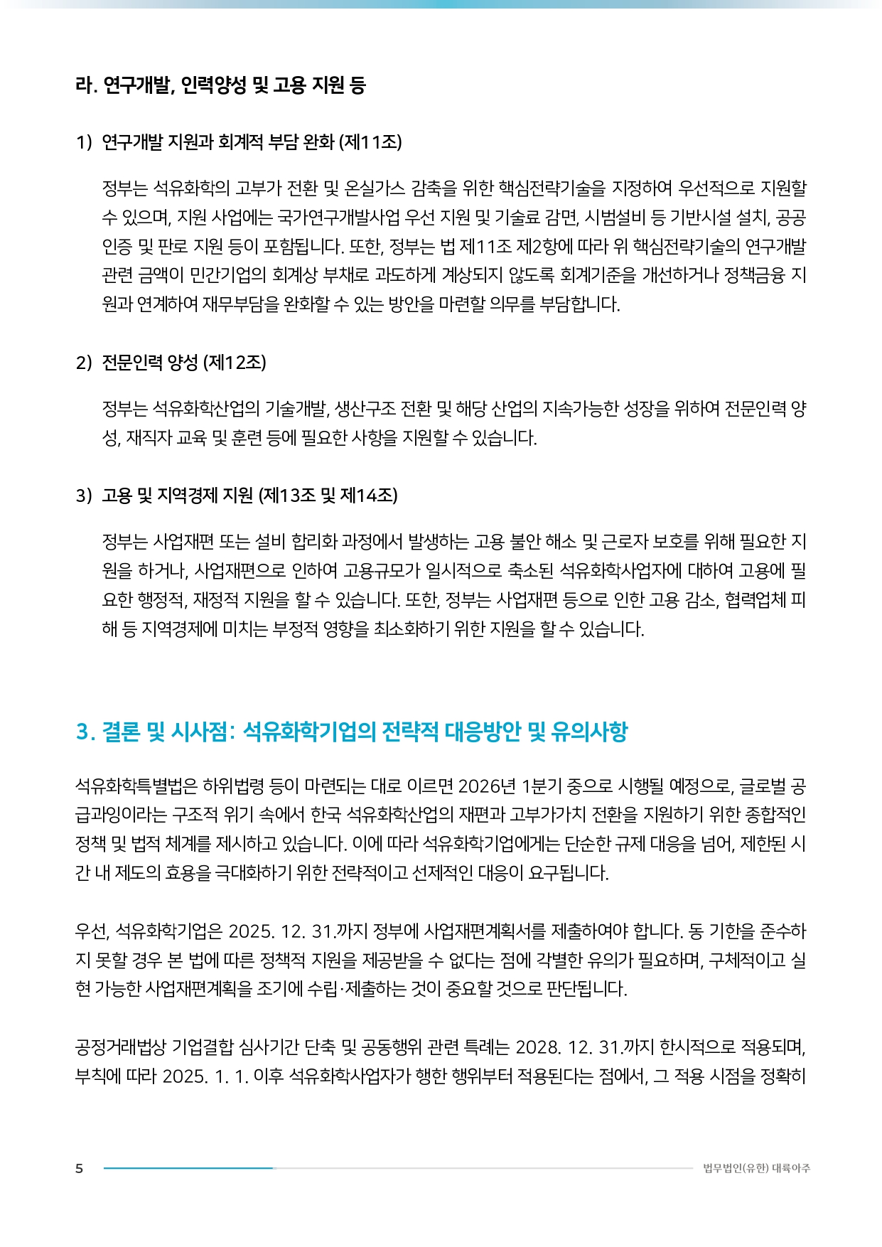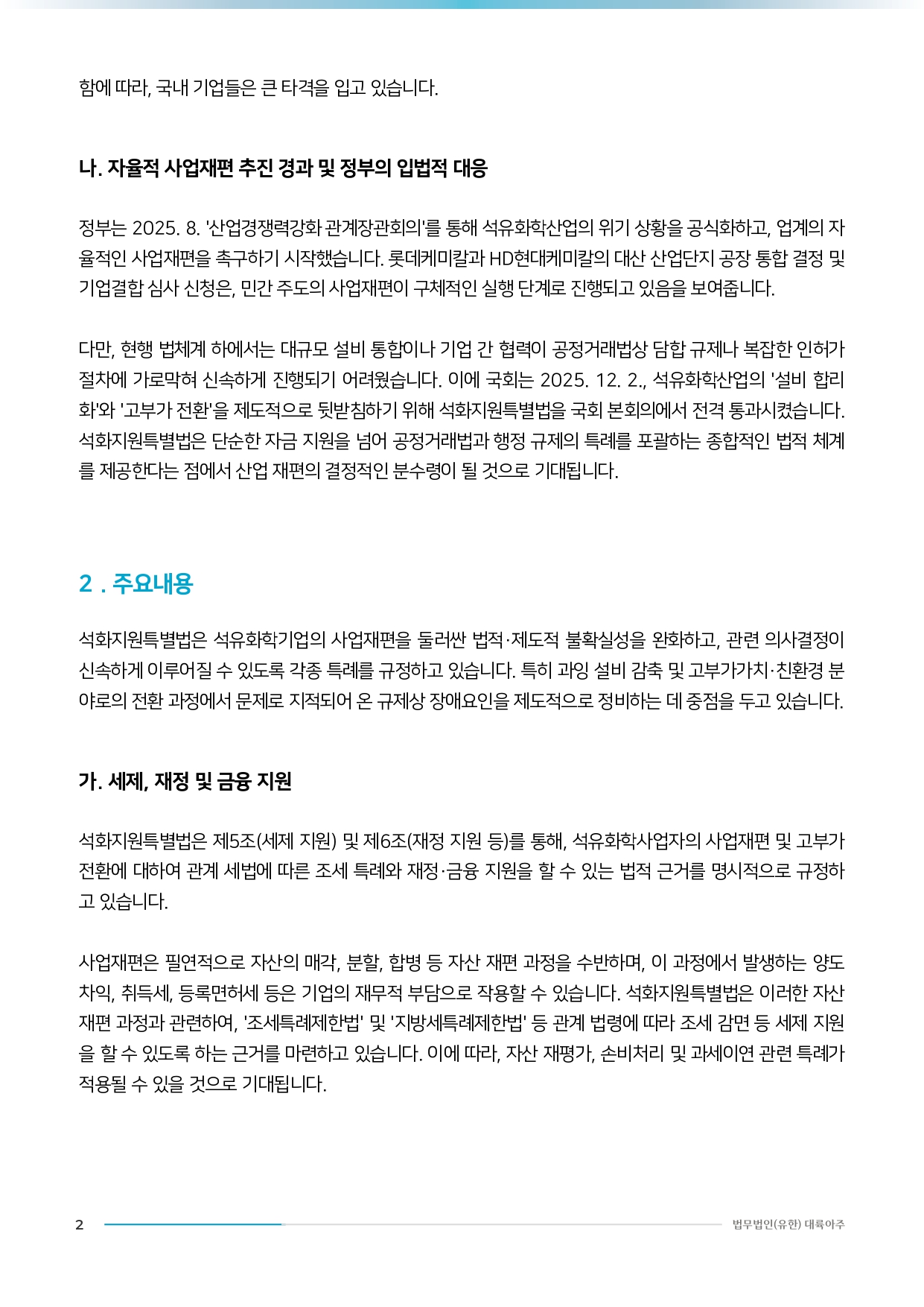 [법무법인(유한) 대륙아주] 에너지인프라 분야 이슈리포트 - ’석유화학산업의 경쟁력 강화 및 지원에 관한 특별법’, 국회 본회의 통과