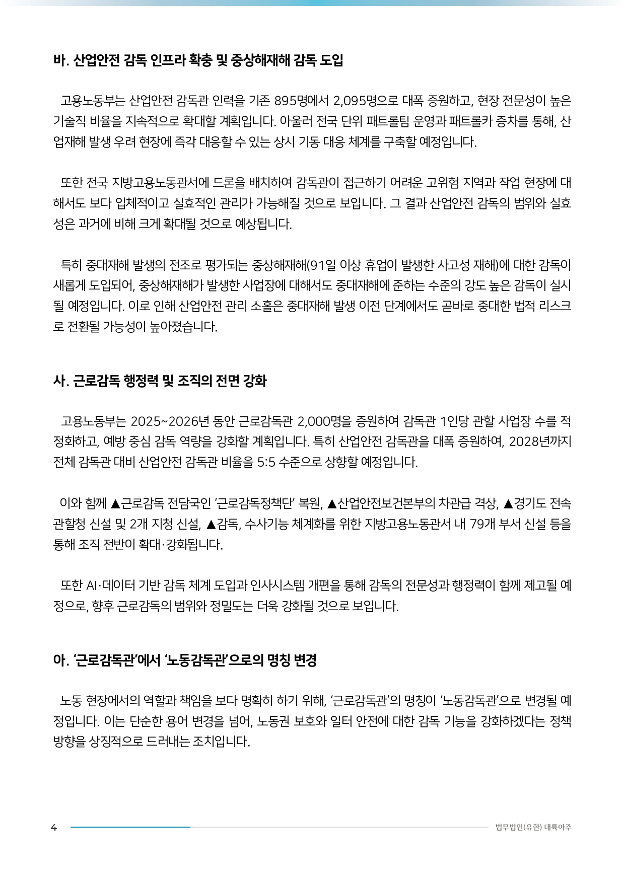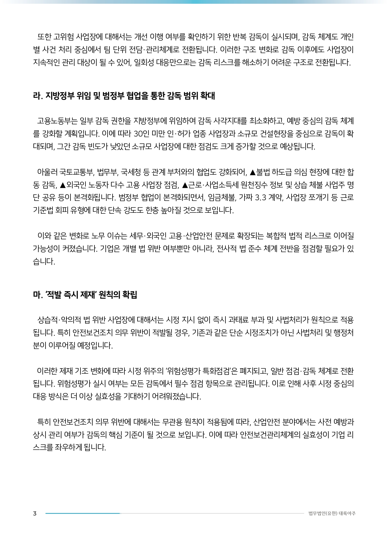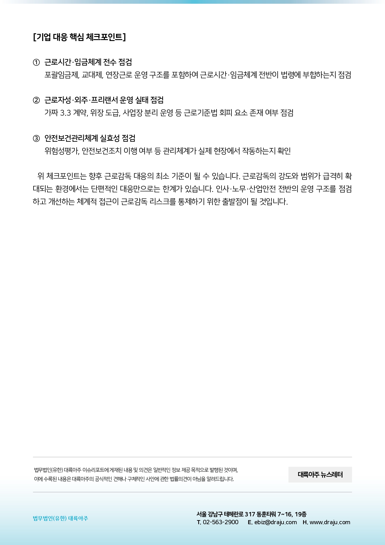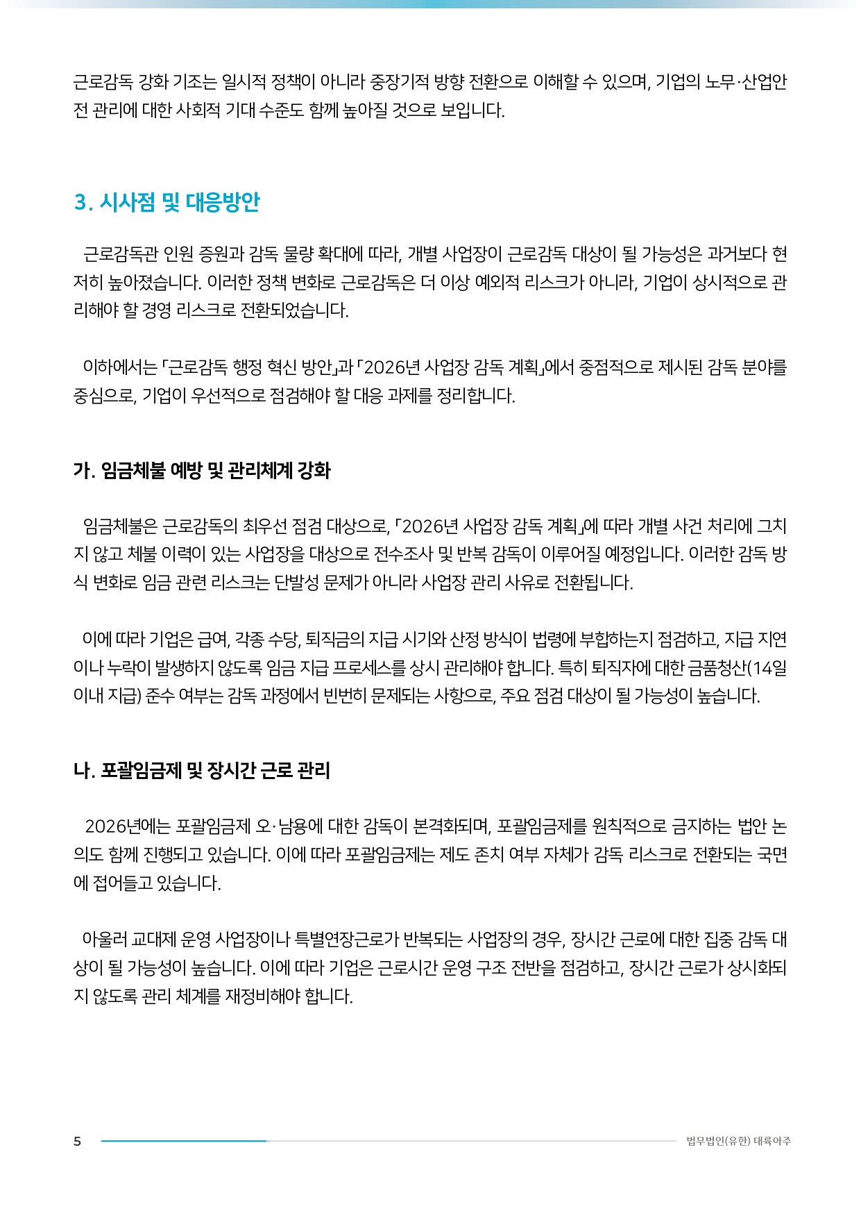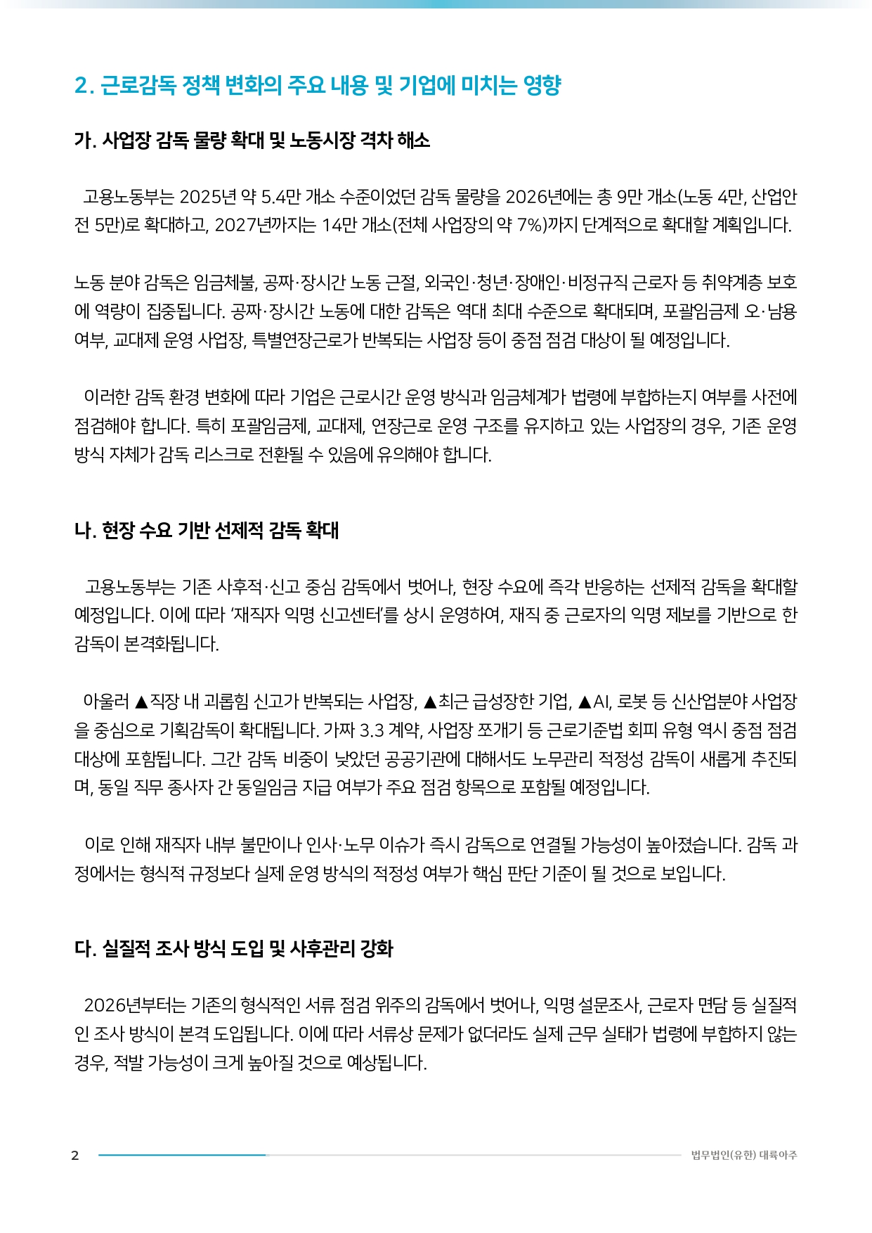 [법무법인(유한) 대륙아주] 인사노무 분야 이슈리포트 - 2026년 근로감독 강화에 따른 기업 리스크 분석 및 대응 방향