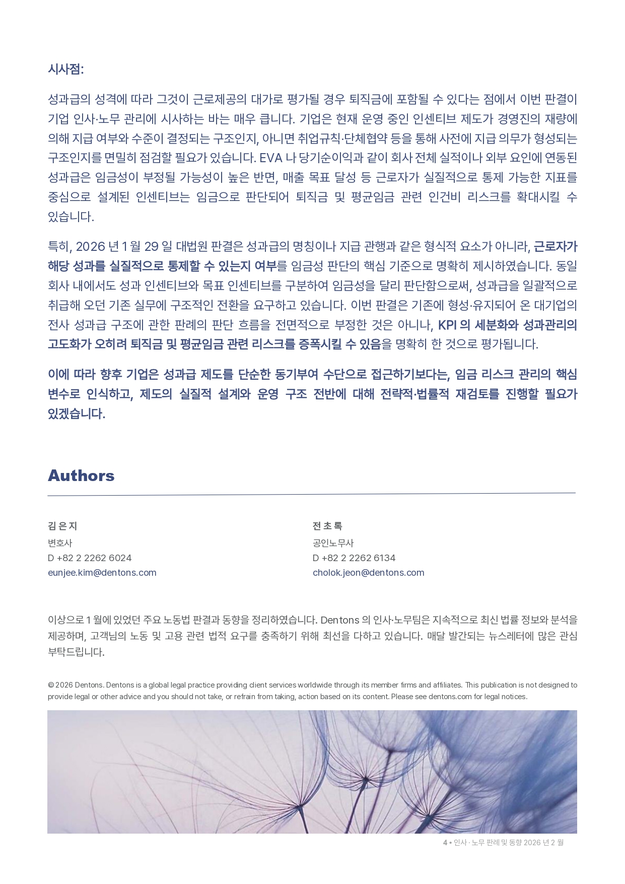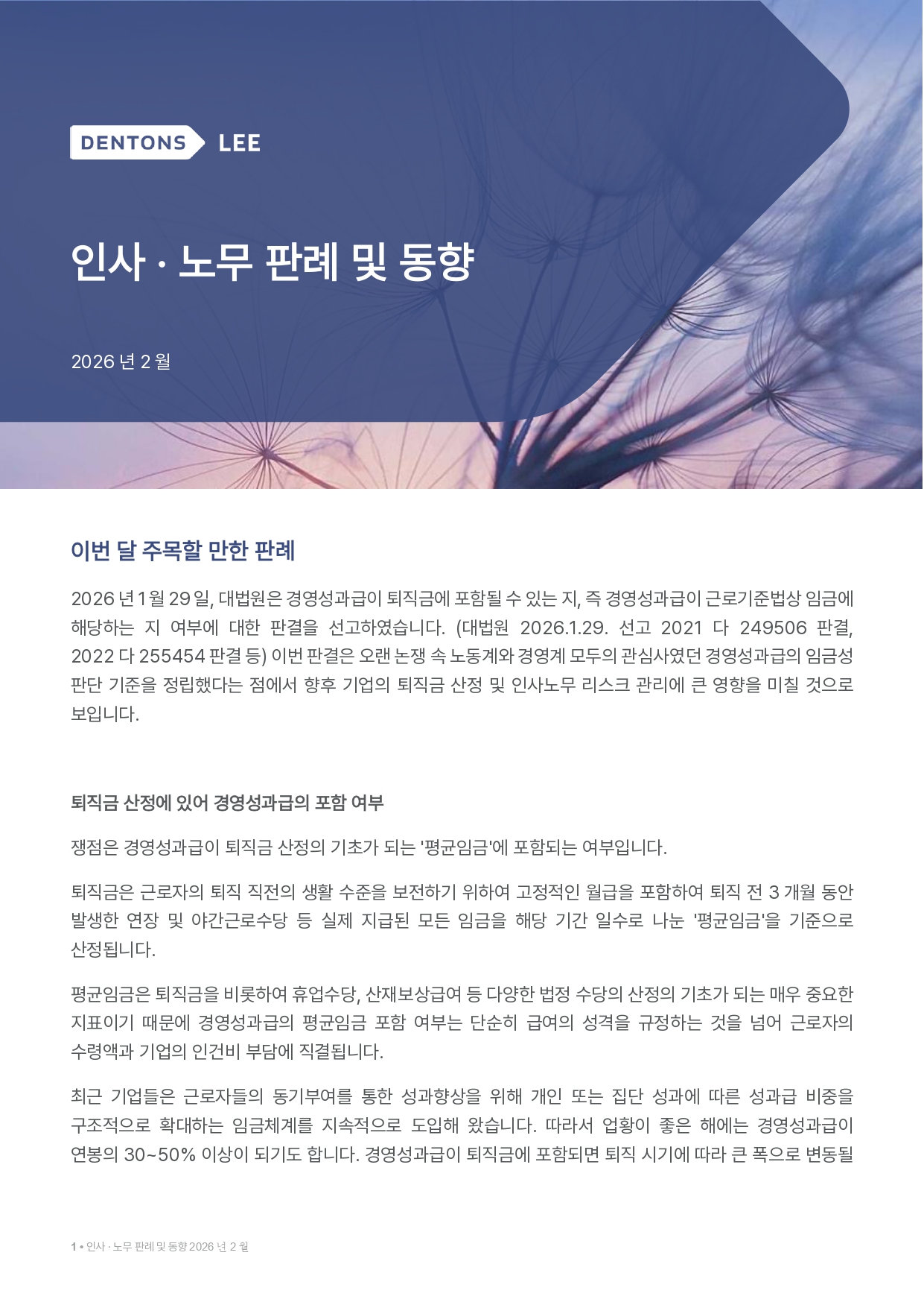 [덴톤스 리 법률사무소] 인사 · 노무 판례 및 동향 2월호