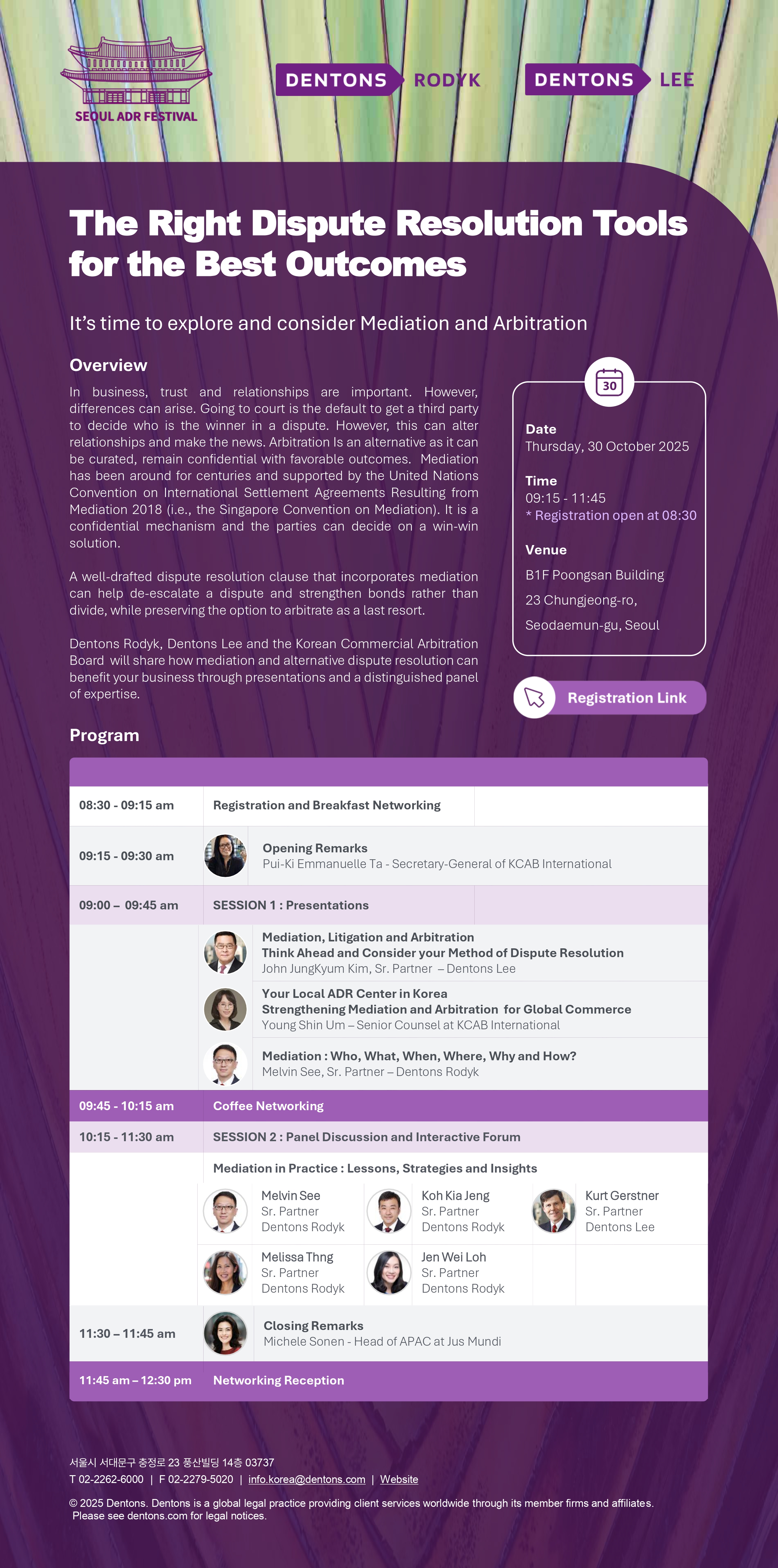 [Dentons Lee] The Right Dispute Resolution Tools for the Best Outcomes_10/30(목)_9:15 AM_풍산빌딩 지하1층 대강당