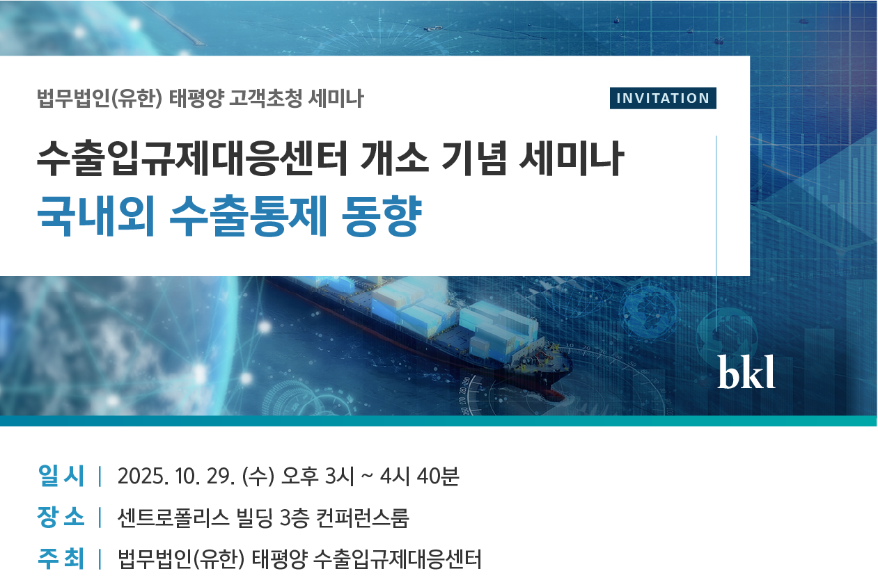 이러한 환경에서 기업들이 직면한 복잡한 과제에 효과적으로 대응할 수 있도록, 법무법인 (유한) 태평양은 수출입규제대응센터를 설립하였습니다. 태평양의 수출입규제대응센터는 전략물자 및 해외수출통제(EAR 등), 방산물자 및 국방과학기술(방위산업기술 포함) 수출통제, 국가핵심기술(NCT) 및 국가첨단전략기술(NHT), 국내외 수출입규제 대응 컴플라이언스 시스템 구축 및 지원, 국가안보심의 및 투자심사, 관세청 수사 및 조사 대응, 외환거래 및 대외투자 관리, 국제분쟁 및 조사대응 등 광범위한 영역에서 풍부한 경험과 전문성을 갖춘 다수의 전문가들이 협업하여, 개별 고객의 상황과 필요에 최적화된 맞춤형 자문 서비스를 제공하고자 합니다.