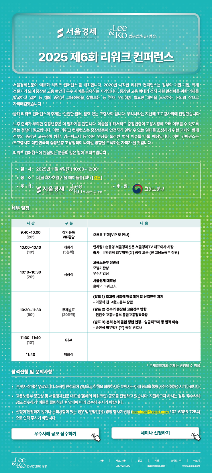 [법무법인(유) 광장] 2025 제6회 리워크 컨퍼런스_11/4(화)_10AM_더 플라자호텔 서울 메이플홀(4F)