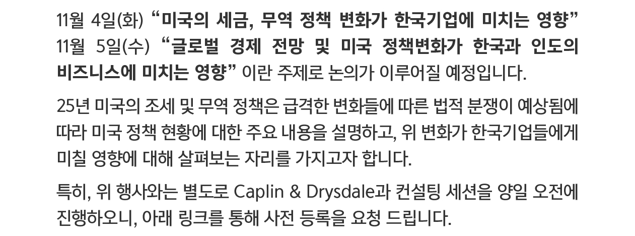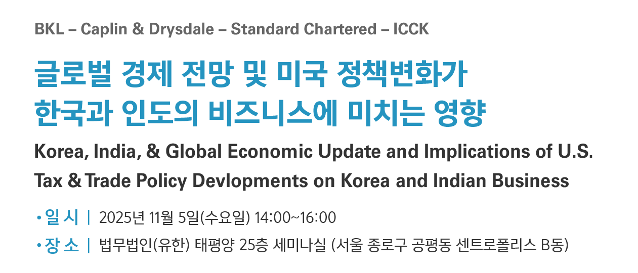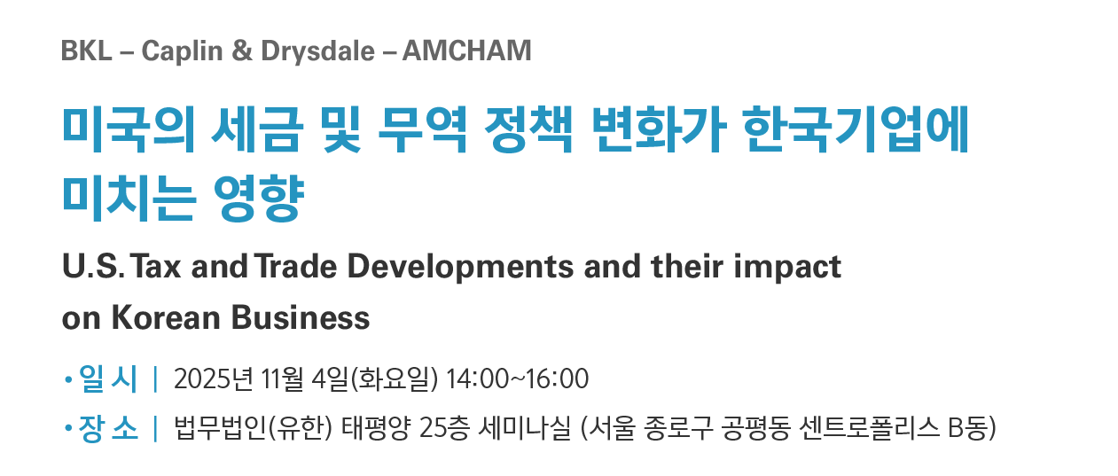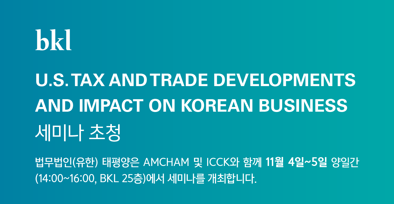 [법무법인(유한) 태평양] [U.S. Tax and Trade Developments and Impact on Korean Business]_11/4(화)~11/5(수)_2PM_센트로폴리스 3층