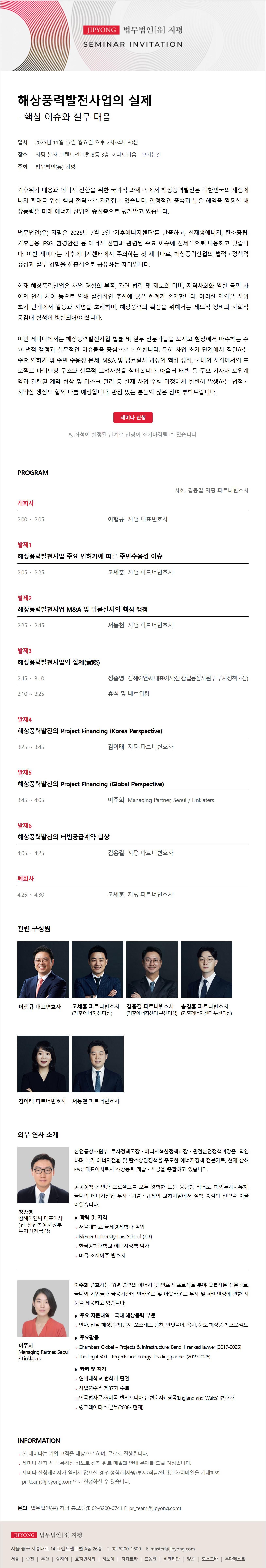 [법무법인(유) 지평] '해상풍력발전사업의 실제 - 핵심 이슈와 실무 대응' 세미나 - 11/17(월) 오후 2시, 지평 본사 그랜드센트럴 B동 3층 오디토리움