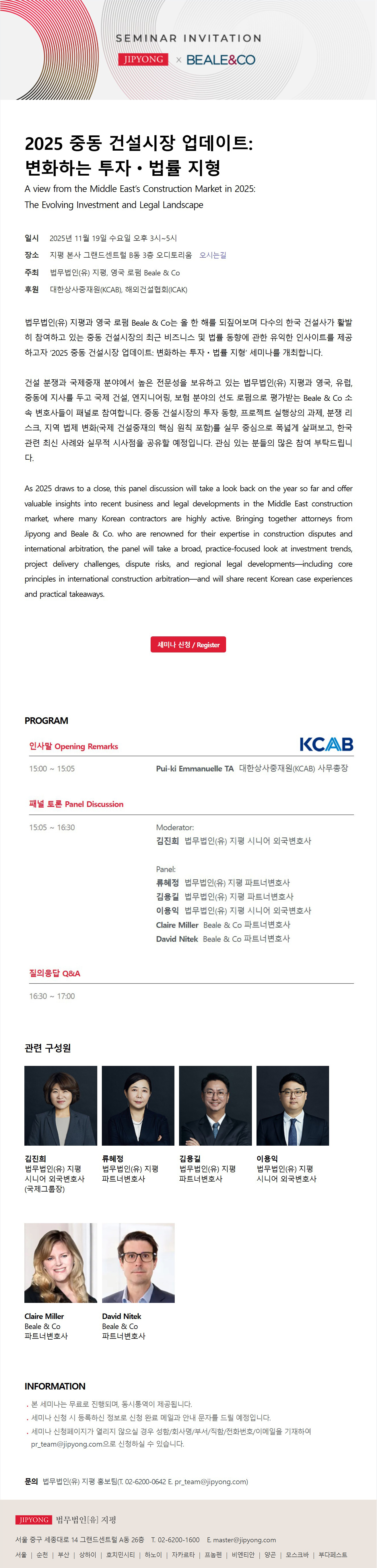 [지평 - Beale & Co] '2025 중동 건설시장 업데이트: 변화하는 투자 · 법률 지형' 세미나 - 11/19(수) 오후 3시