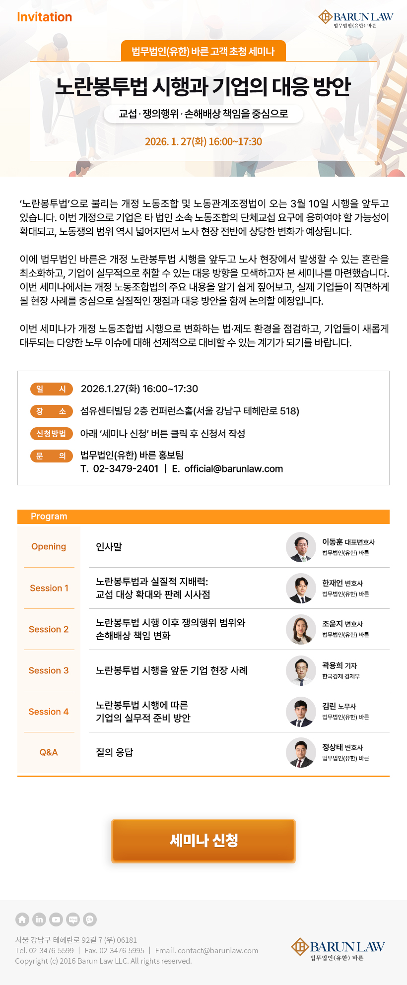 [법무법인(유한) 바른] '노란봉투법 시행과 기업의 대응 방안’ 세미나 - 1/27(화) 오후 4시