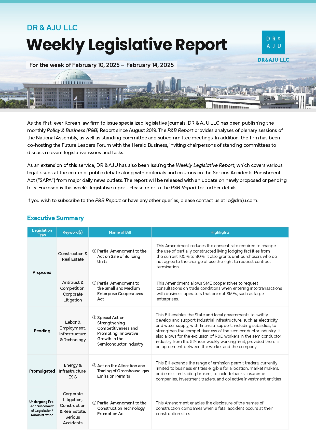 [법무법인(유한) 대륙아주] DR_AJU_Weekly_Legislative_Report_Week_of_February_10_to_February_14_2025