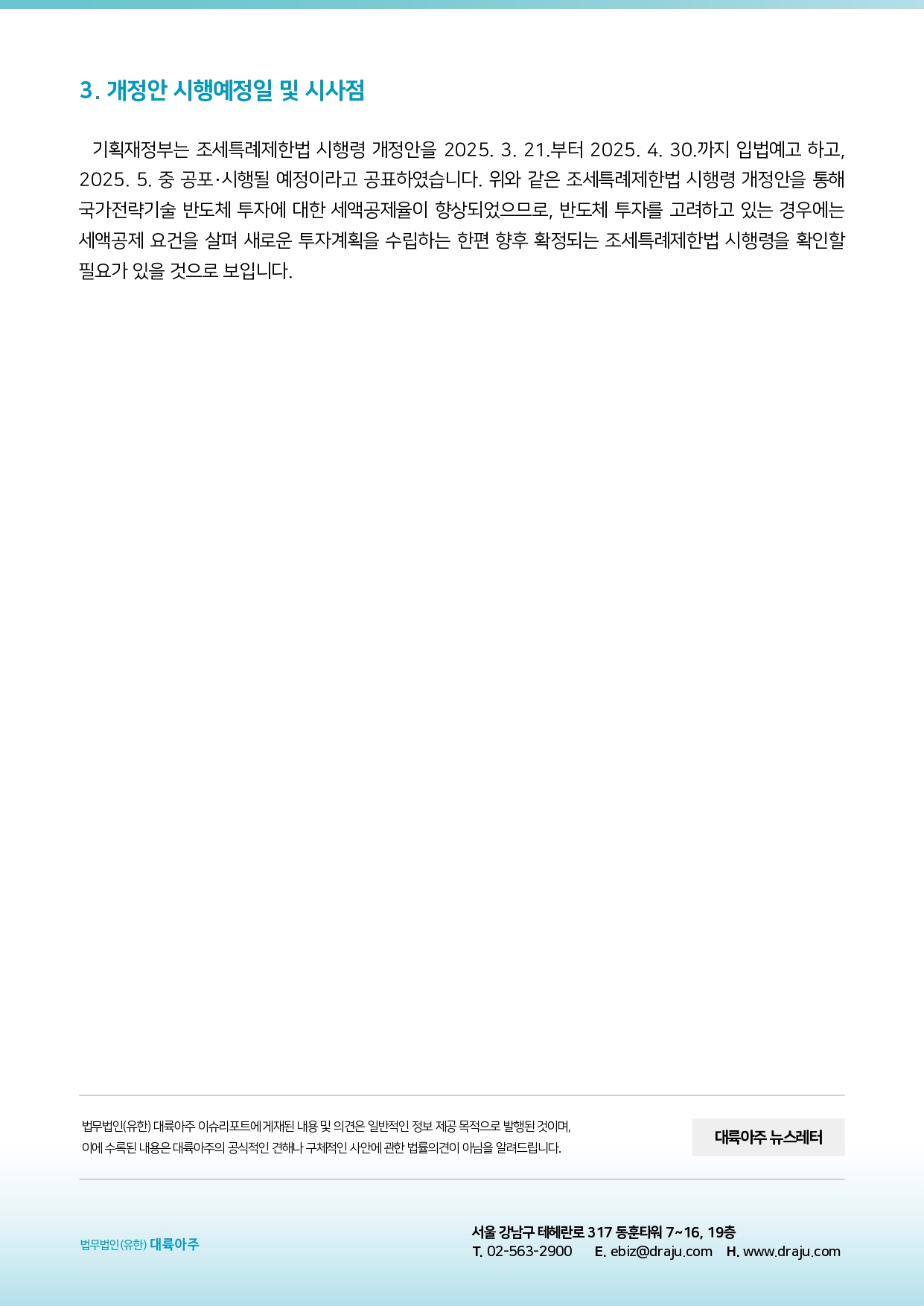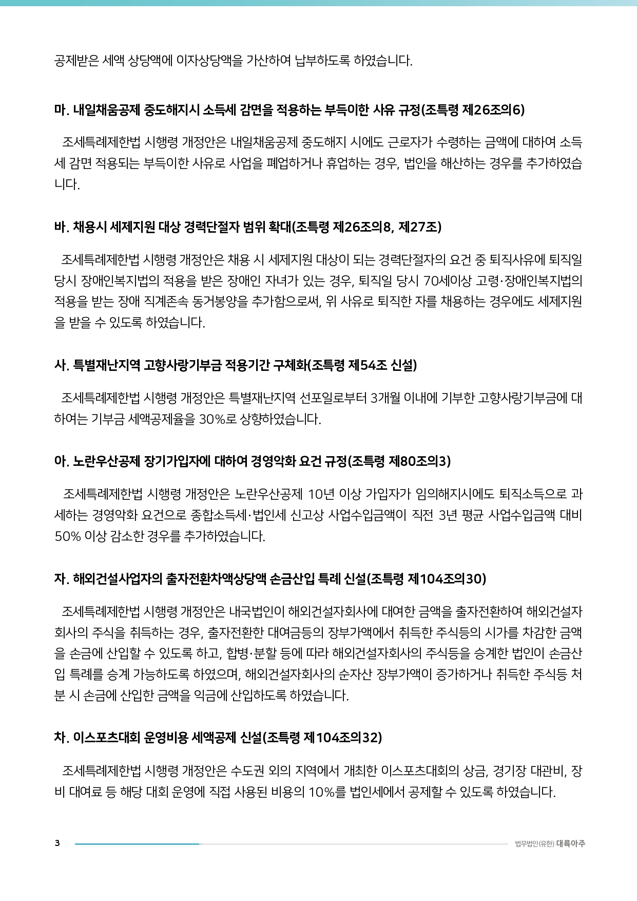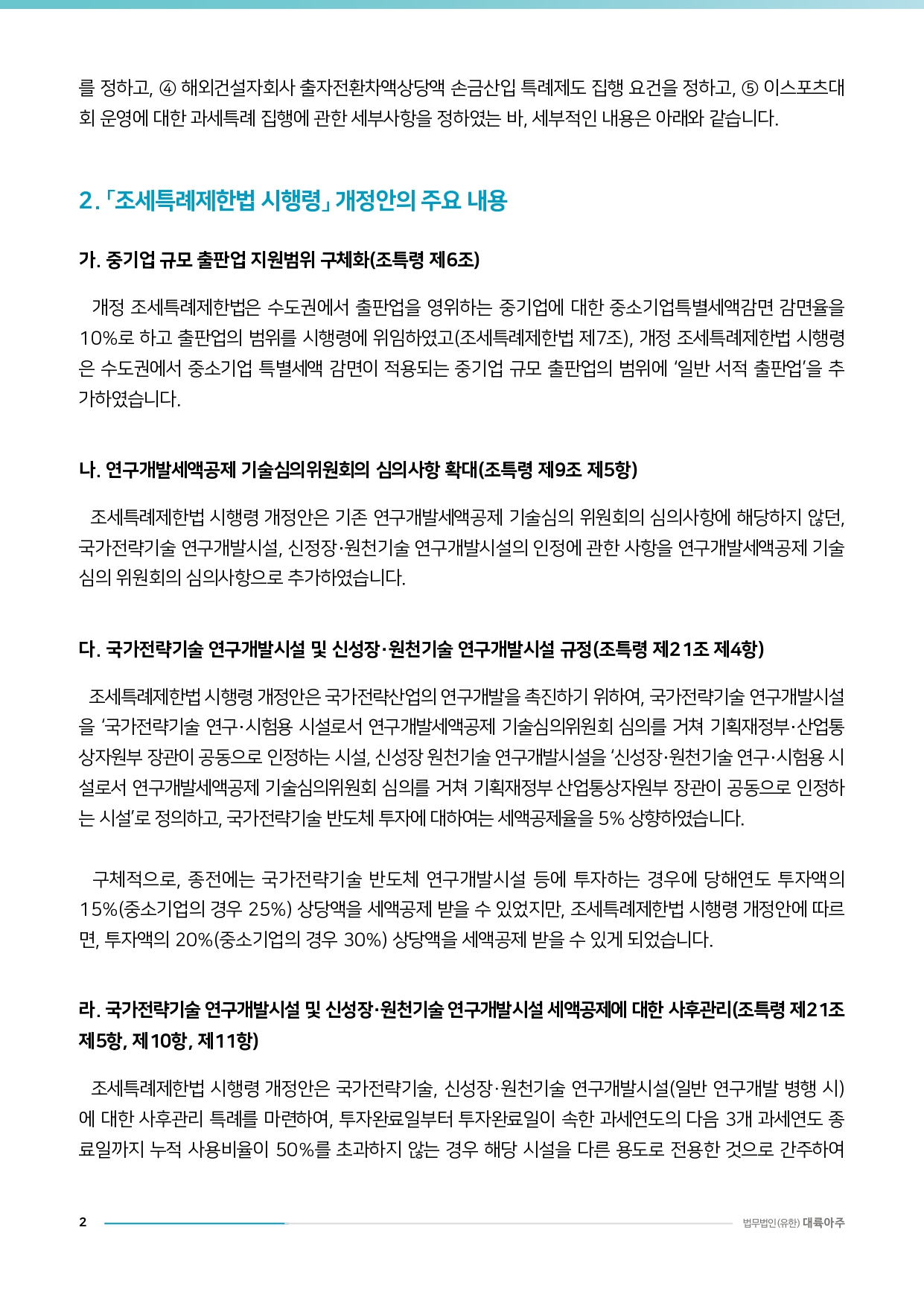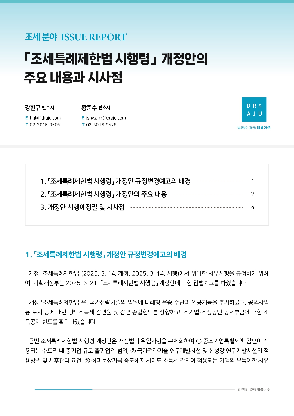 [법무법인(유한) 대륙아주] 조세 분야 이슈리포트 - 조세특례제한법 시행령 개정안의 주요 내용과 시사점