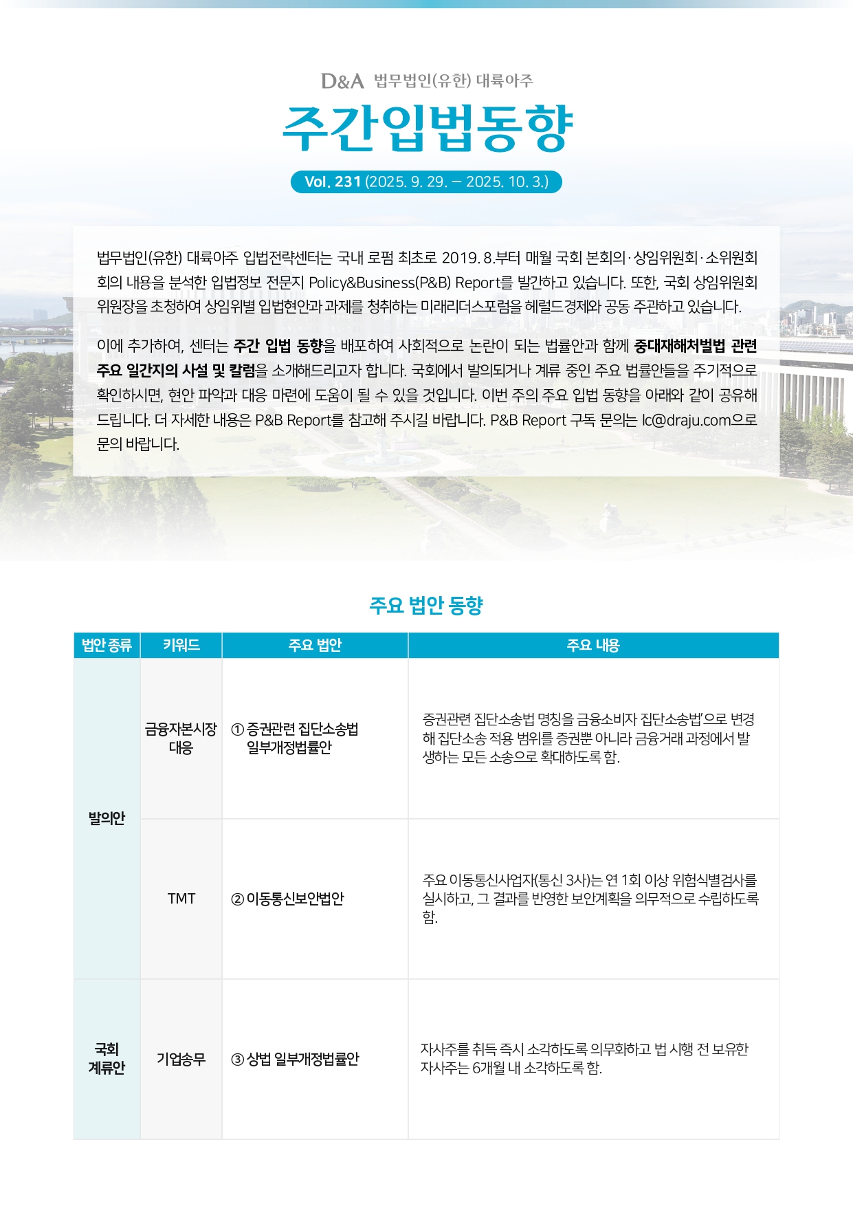 [법무법인(유한) 대륙아주] 주간입법동향_vol231