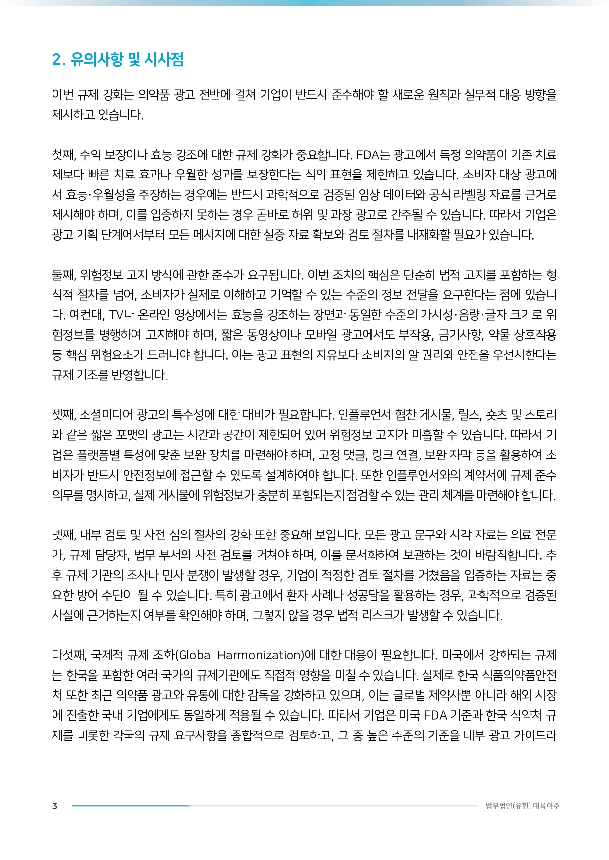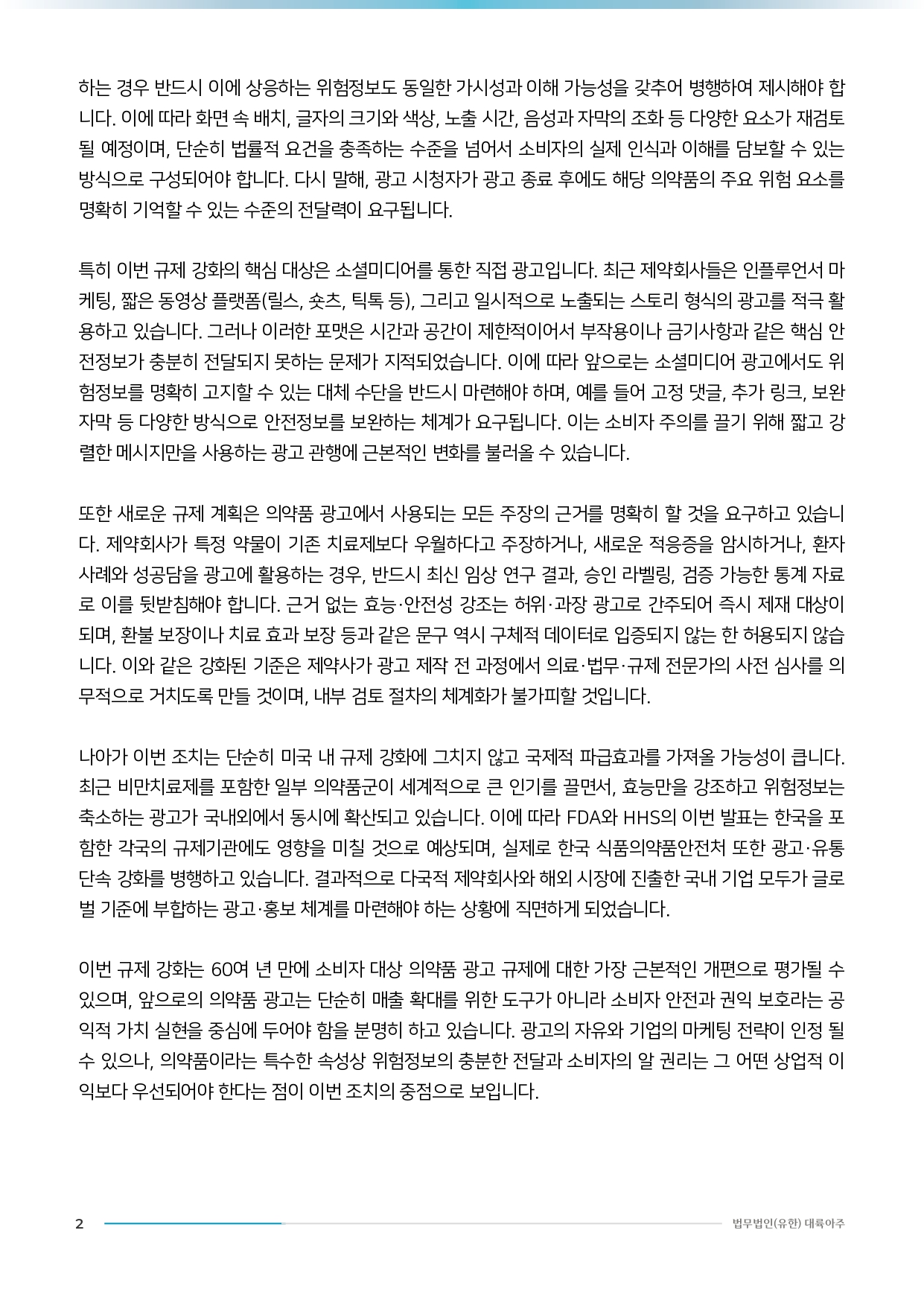 [법무법인(유한) 대륙아주] 해외규제 리포트 - 미 FDA·HHS, DTC 의약품 광고 규제 전면 강화
