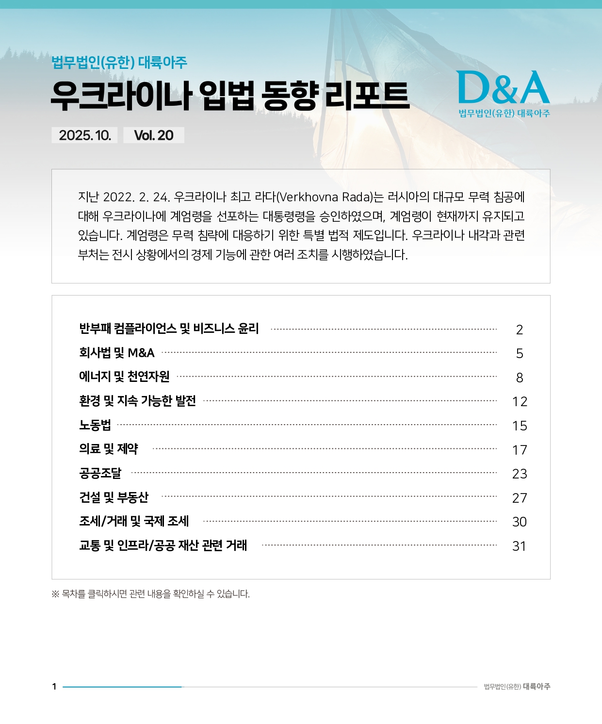 [법무법인(유한) 대륙아주] 우크라이나 입법 동향 리포트 Vol.20