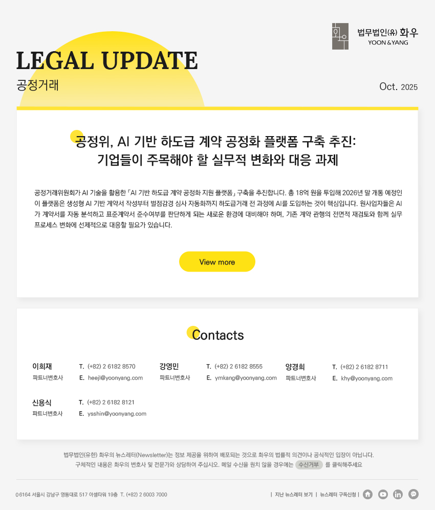 [법무법인(유한) 화우] 공정위, AI 기반 하도급 계약 공정화 플랫폼 구축 추진: 기업들이 주목해야 할 실무적 변화와 대응 과제