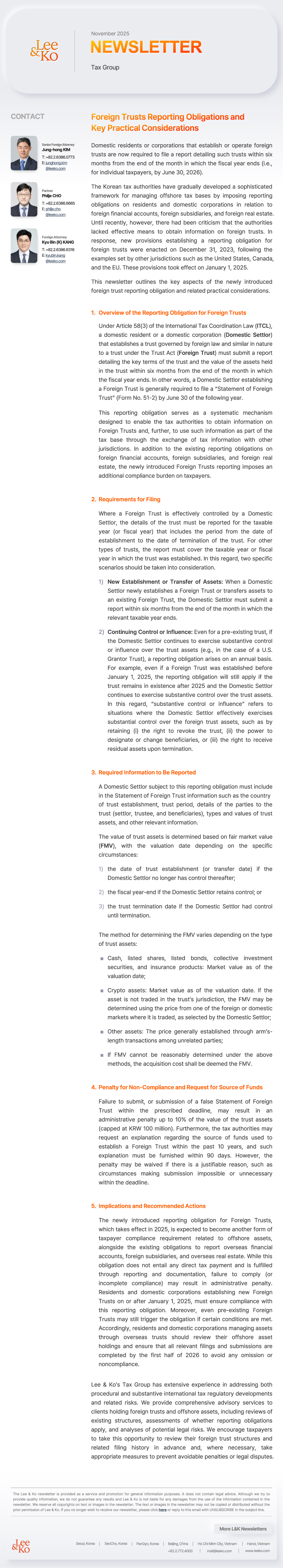 [법무법인(유) 광장] Foreign Trusts Reporting Obligations and Key Practical Considerations (Audio Available)