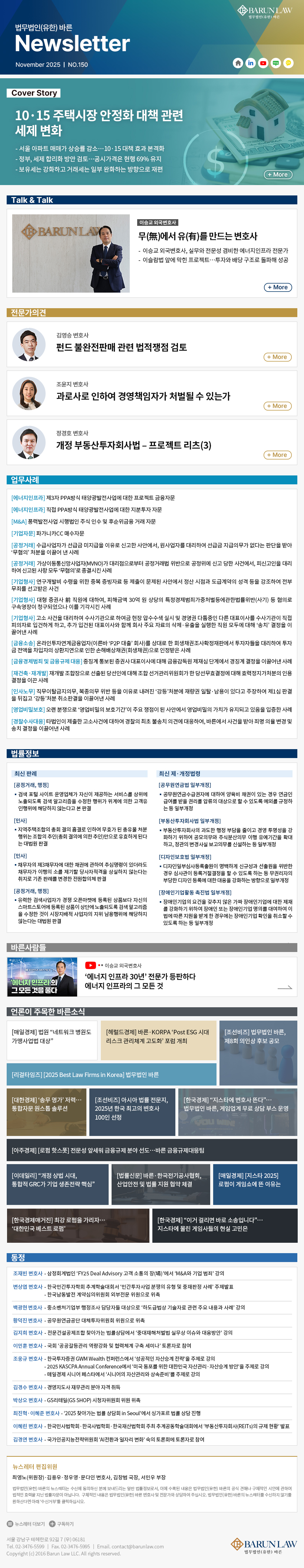 [법무법인(유한) 바른] 뉴스레터 - 150호 (2025.11)