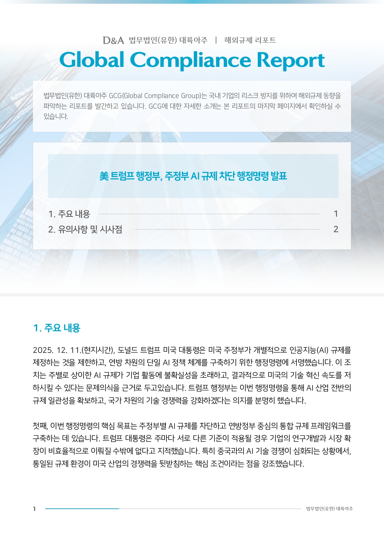 [법무법인(유한) 대륙아주] 해외규제 리포트 - 美 트럼프 행정부, 주정부 AI 규제 차단 행정명령 발표