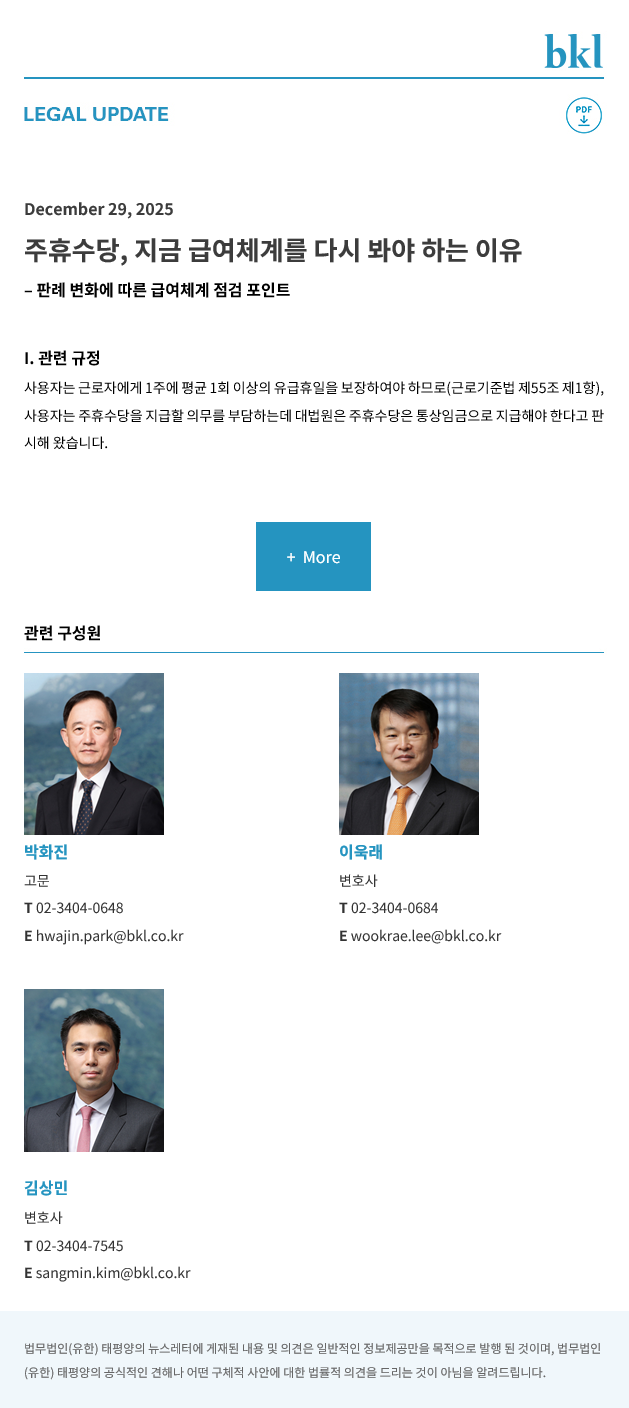 [법무법인(유한) 태평양] 주휴수당, 지금 급여체계를 다시 봐야 하는 이유
