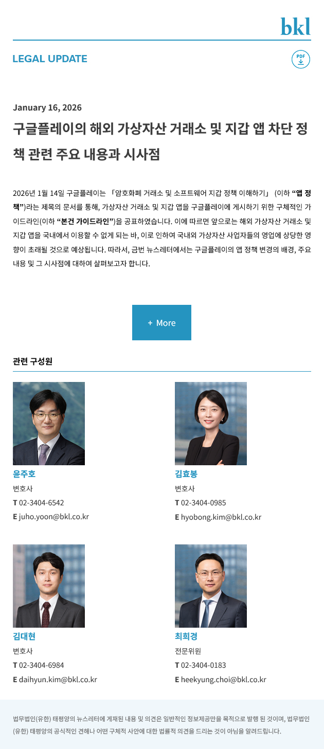 [법무법인(유한) 태평양] 구글플레이의 해외 가상자산 거래소 및 지갑 앱 차단 정책 관련 주요 내용과 시사점
