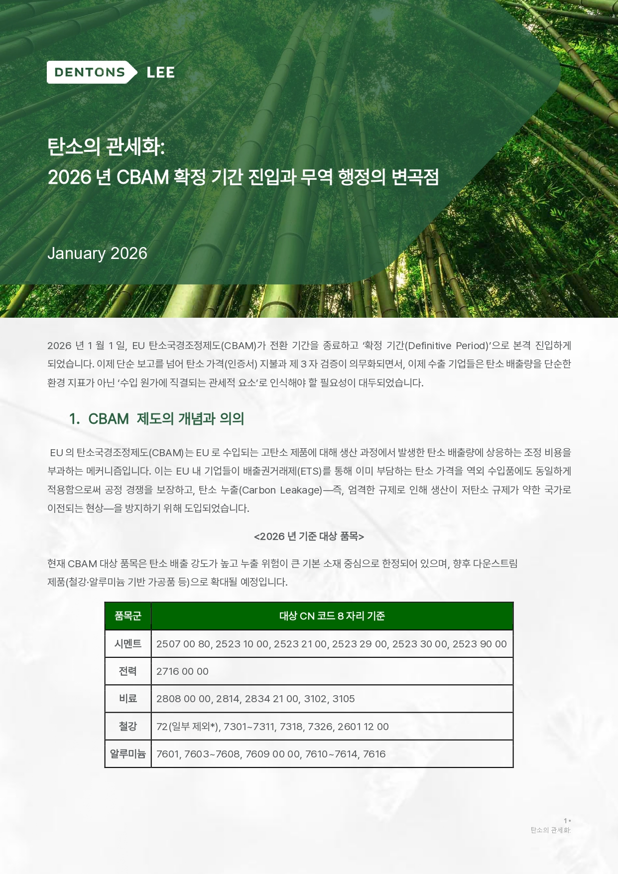 [덴톤스 리 법률사무소] 뉴스레터 - 탄소의 관세화: 2026년 CBAM 확정 기간 진입과 무역 행정의 변곡점