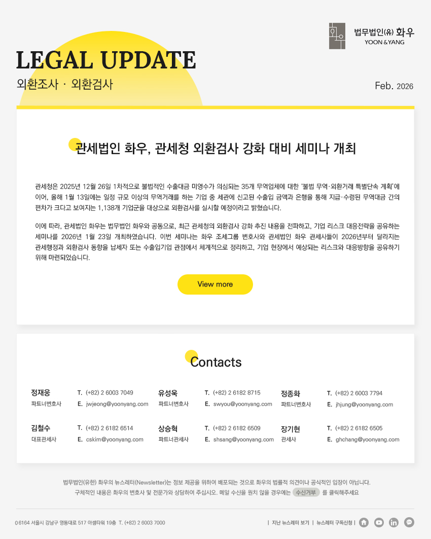 [법무법인(유한) 화우] 관세법인 화우, 관세청 외환검사 강화 대비 세미나 개최