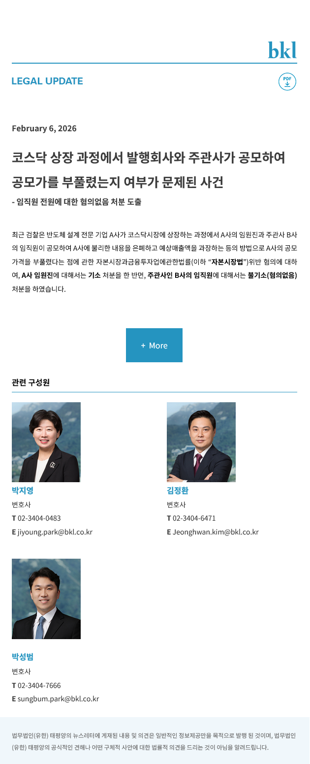 [법무법인(유한) 태평양] 코스닥 상장 과정에서 발행회사와 주관사가 공모하여 공모가를 부풀렸는지 여부가 문제된 사건
