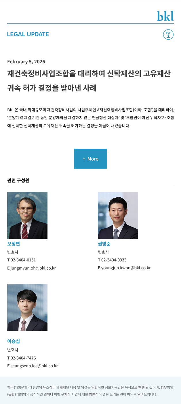 [법무법인(유한) 태평양] 재건축정비사업조합을 대리하여 신탁재산의 고유재산 귀속 허가 결정을 받아낸 사례