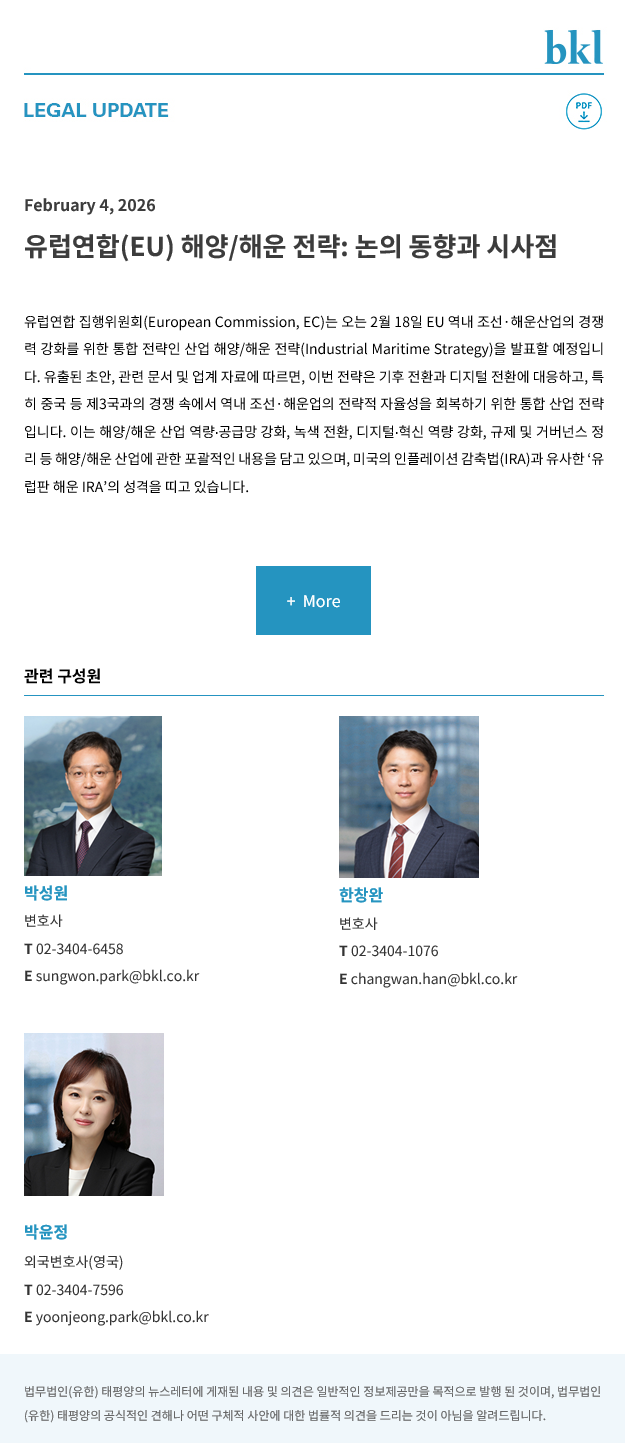 [법무법인(유한) 태평양] 유럽연합(EU) 해양/해운 전략: 논의 동향과 시사점