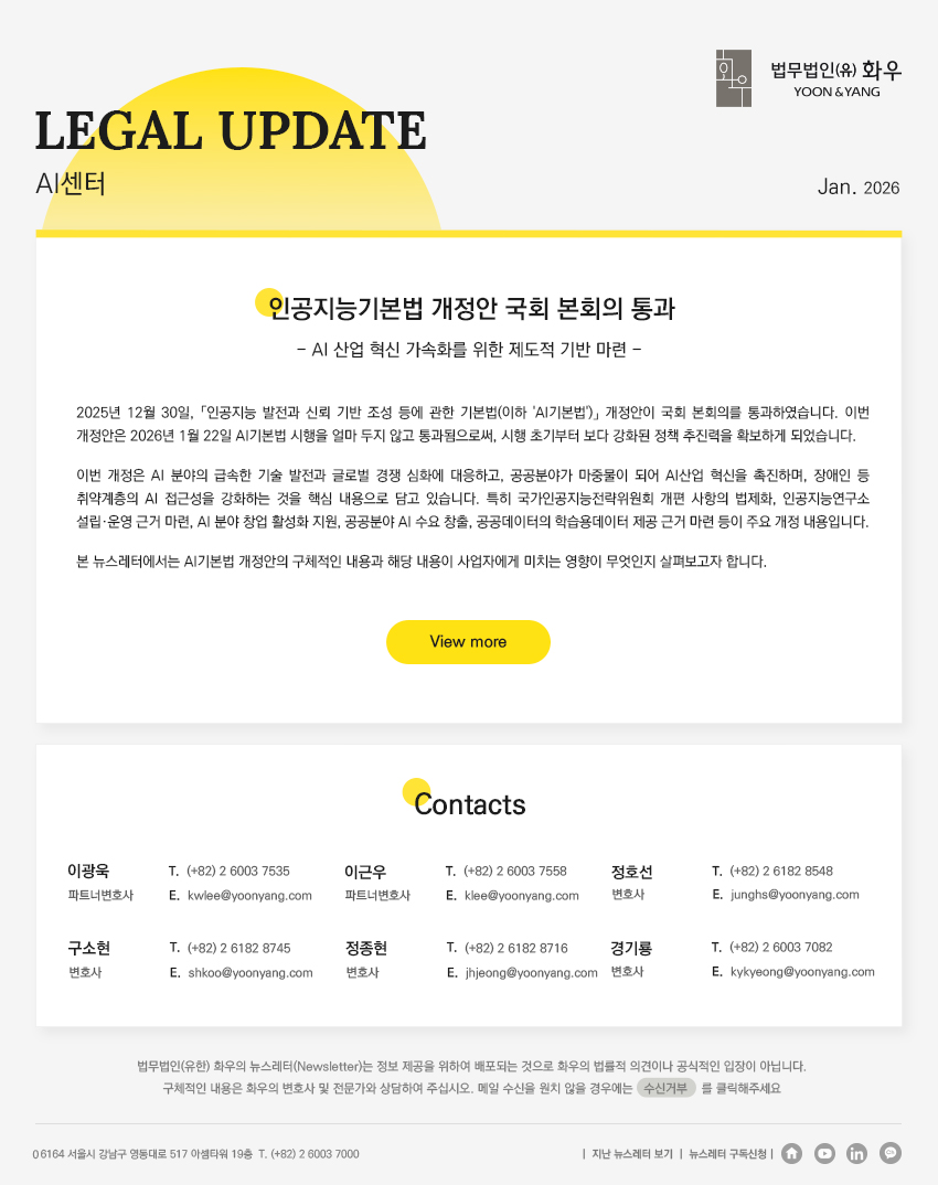 [법무법인(유한) 화우] 인공지능기본법 개정안 국회 본회의 통과
