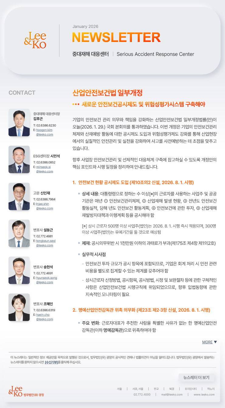 [법무법인(유) 광장] 산업안전보건법 일부개정