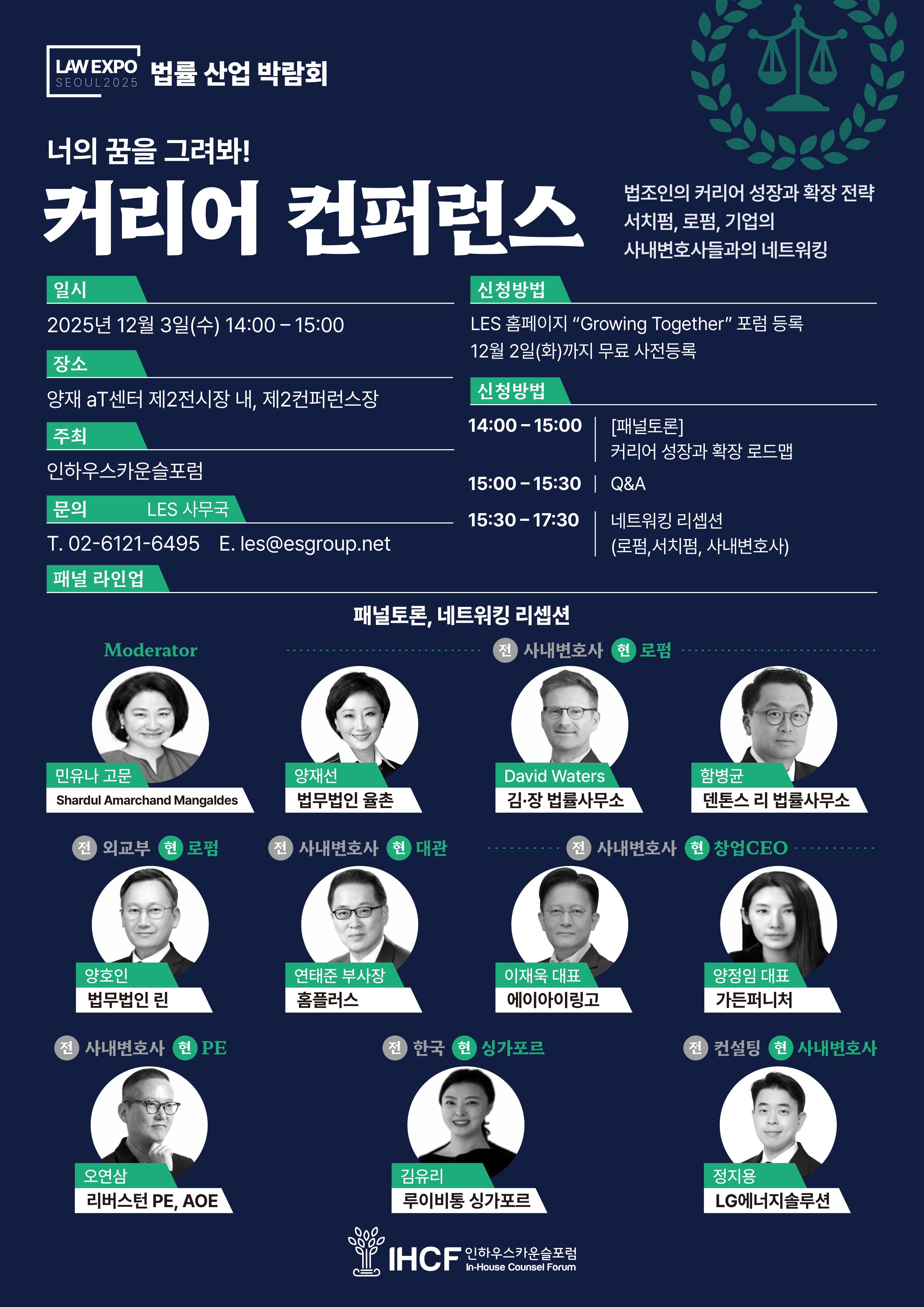오는 12월 3일(수)~5일(금), 양재 aT센터에서 IHCF와 법률신문, 메쎄이상이 공동 주최하는 「2025 법률 산업 박람회(LAW EXPO SEOUL 2025)」가 개최됩니다.
