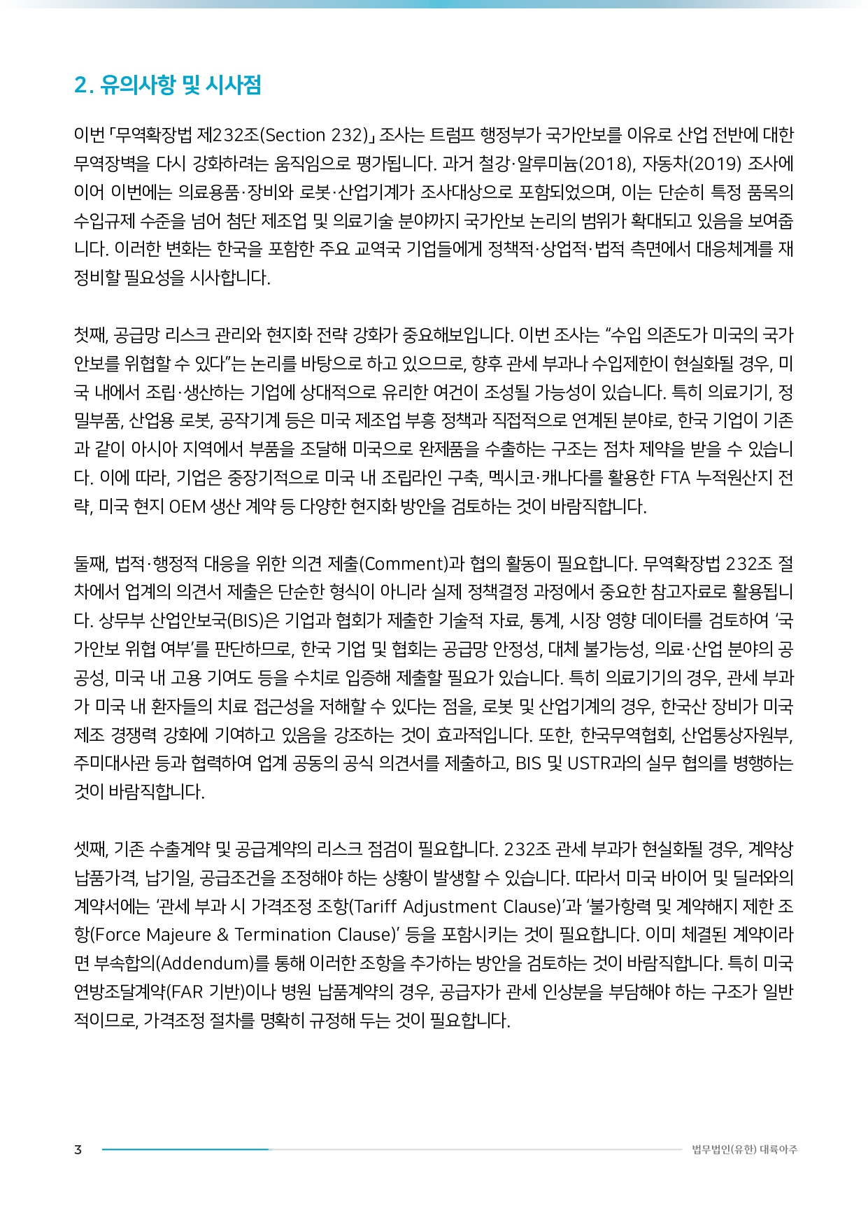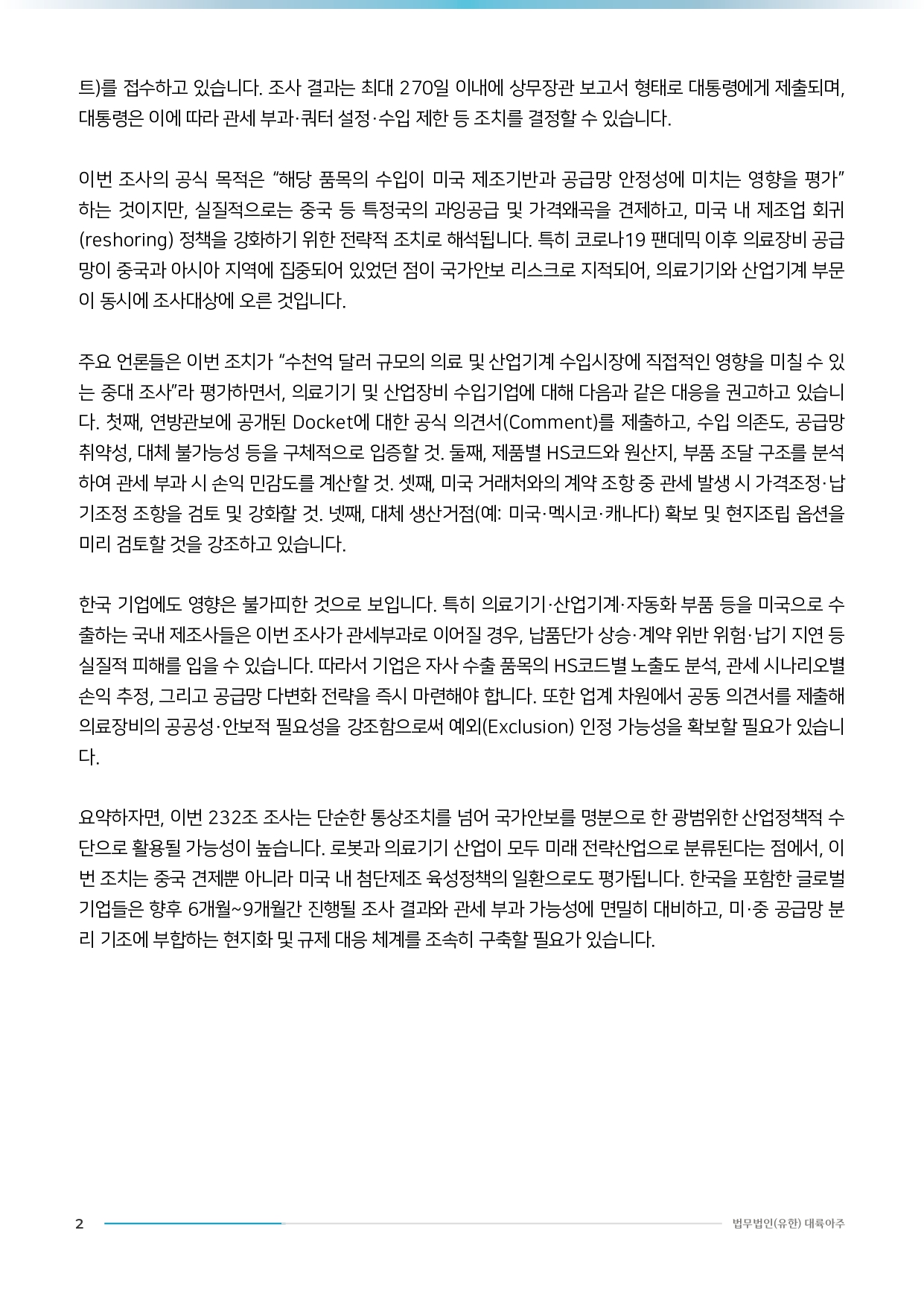 [법무법인(유한) 대륙아주] 해외규제 리포트 - 트럼프 행정부, 로봇·산업기계·의료기기 수입에 대한 232조 안보조사 착수