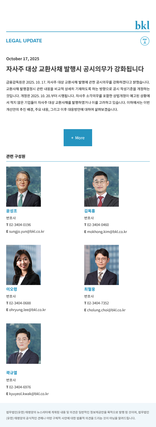 [법무법인(유한) 태평양] 자사주 대상 교환사채 발행시 공시의무가 강화됩니다
