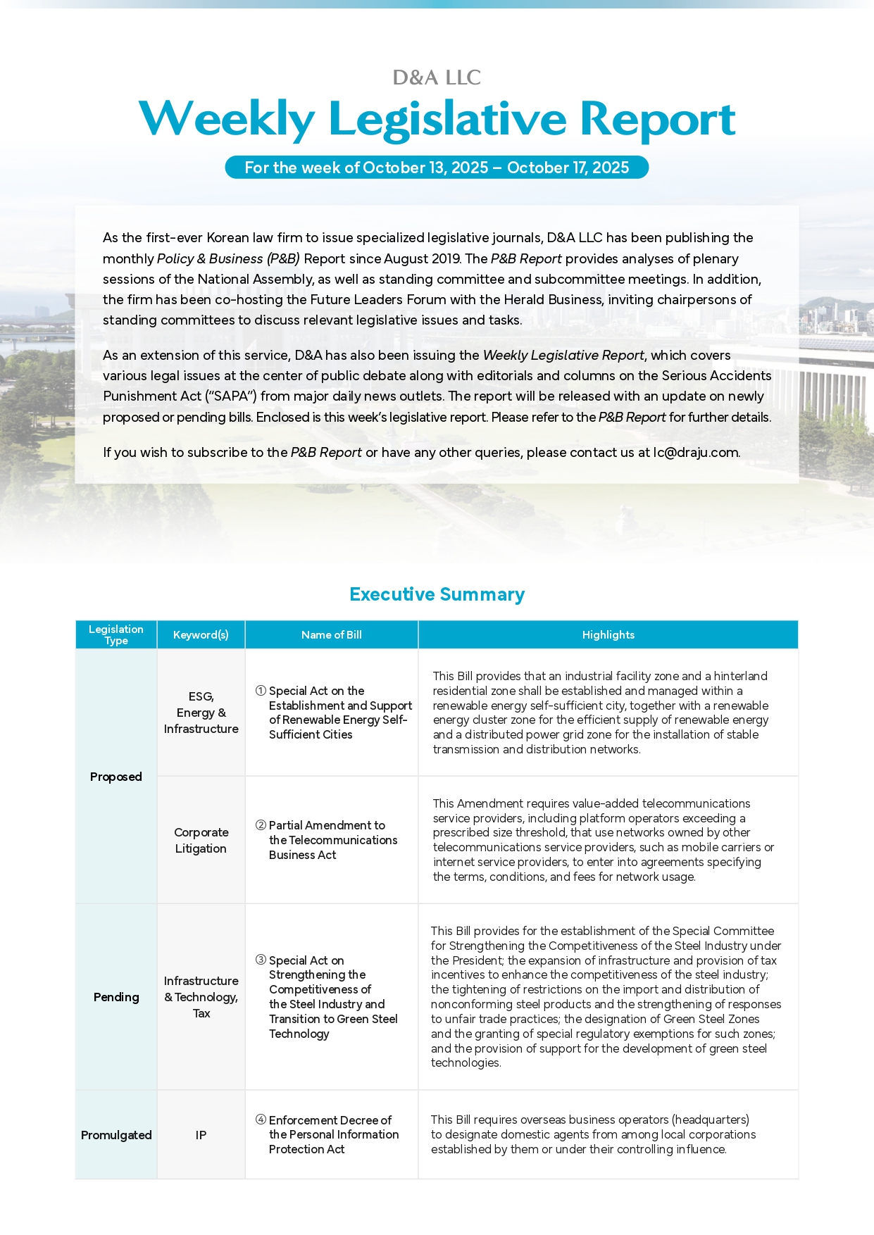 [법무법인(유한) 대륙아주] D_A_Weekly_Legislative_Report_Week_of_October_13_to_October_17_2025