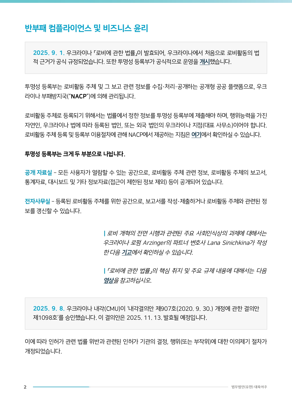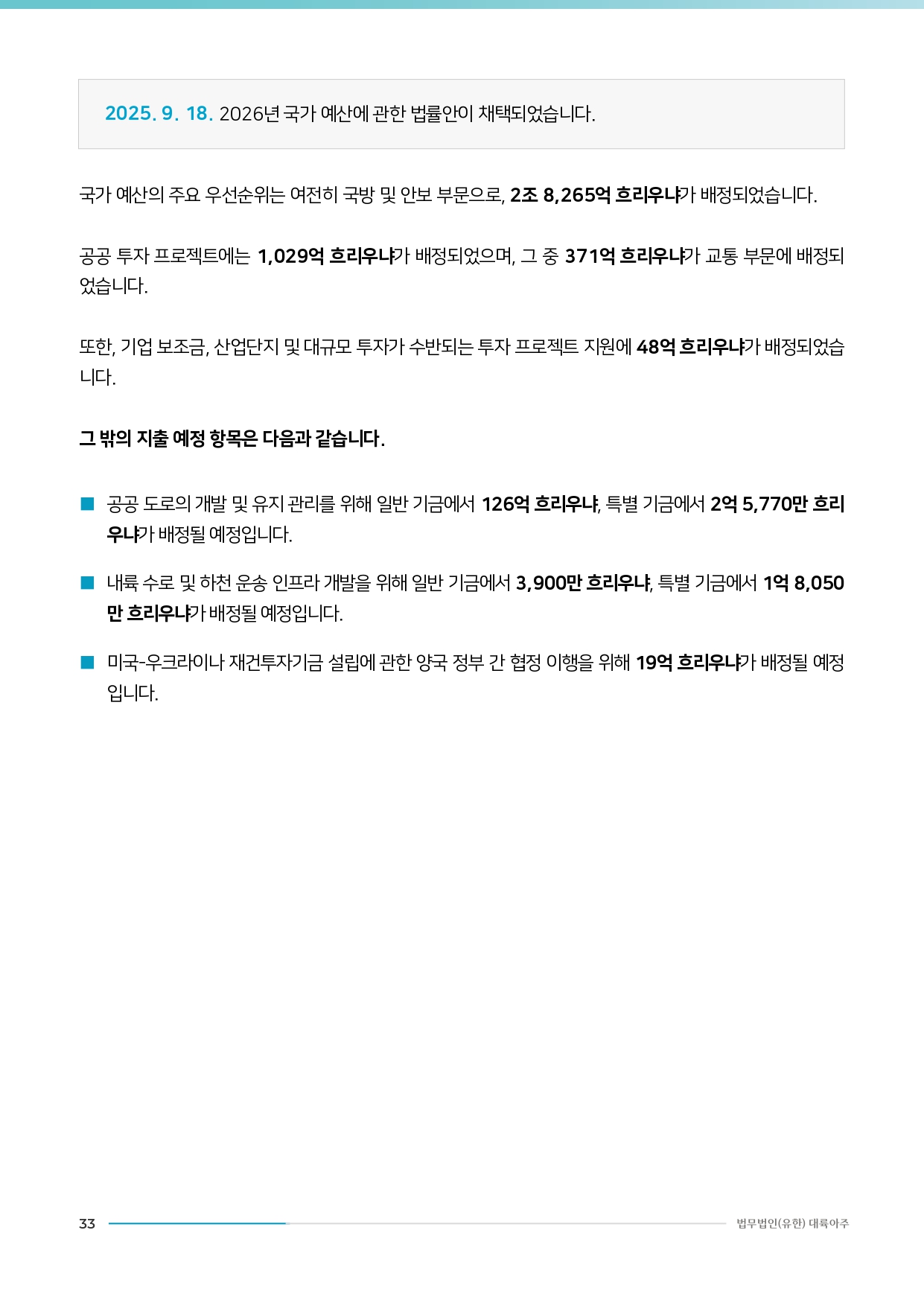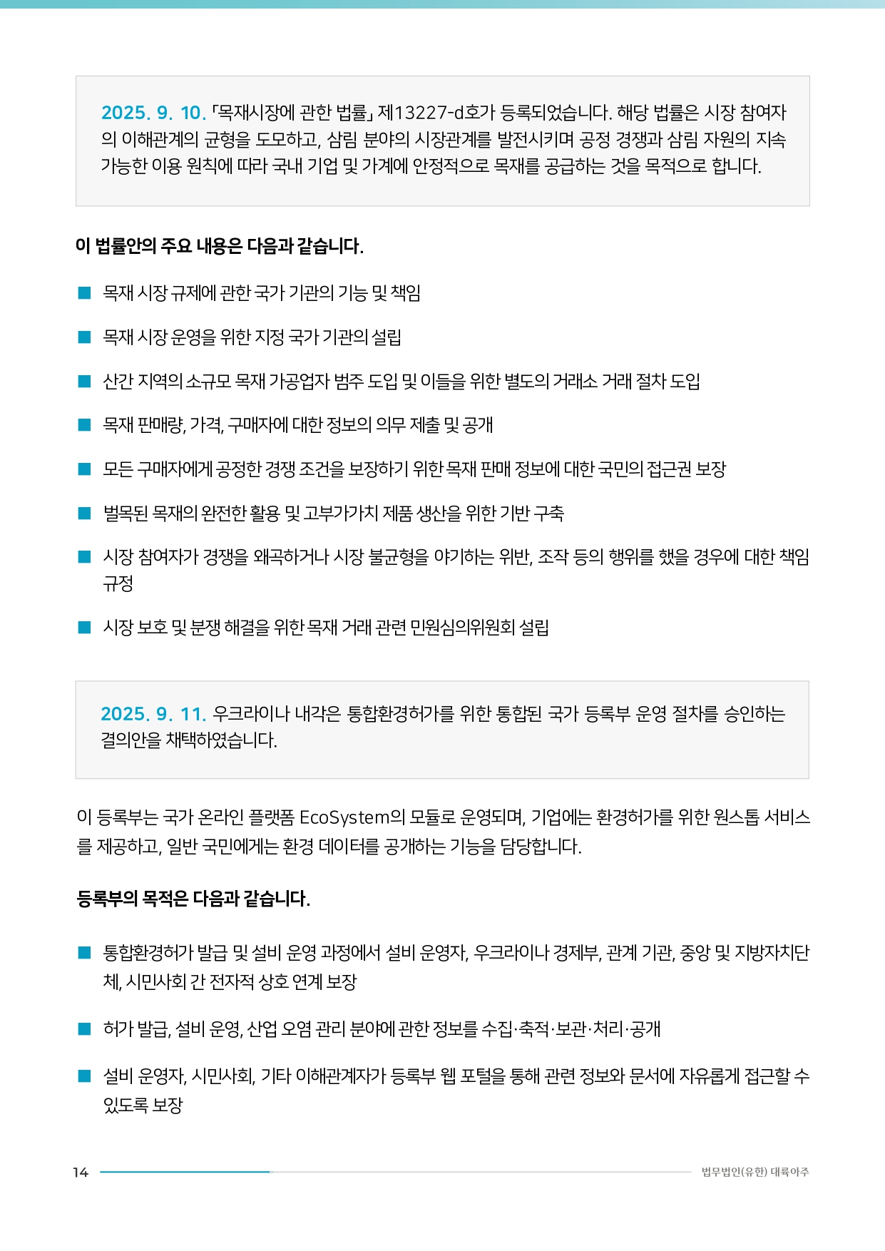 [법무법인(유한) 대륙아주] 우크라이나 입법 동향 리포트 Vol.20