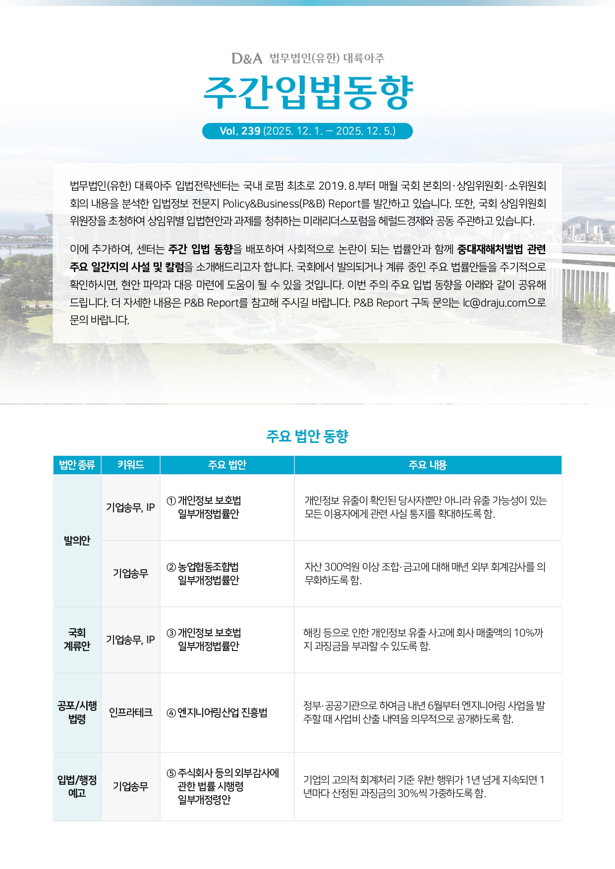 [법무법인(유한) 대륙아주] 주간입법동향_vol239