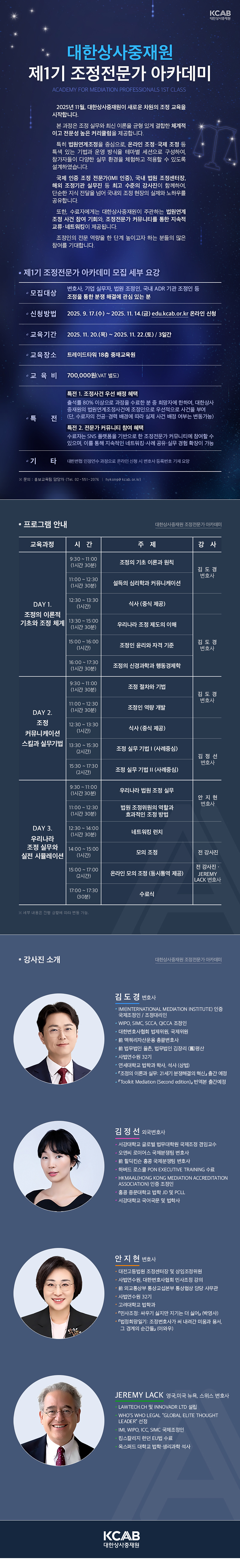 [대한상사중재원] 제1기 조정전문가 아카데미_11/20(목)~11/22(토)_트레이드타워 18층 중재교육원