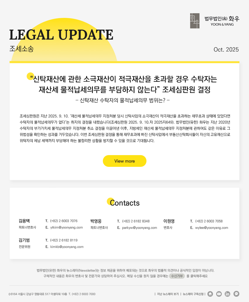 [법무법인(유한) 화우] “신탁재산에 관한 소극재산이 적극재산을 초과할 경우 수탁자는 재산세 물적납세의무를 부담하지 않는다” 조세심판원 결정